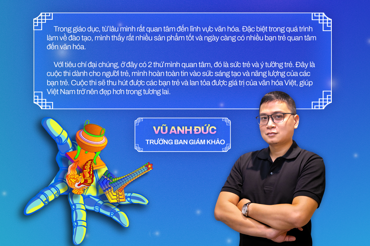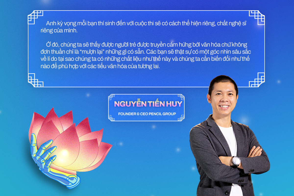 Về vấn đề AI, anh Đức khẳng định AI là một công cụ hỗ trợ tuyệt vời, nhưng không thể thay thế sự sáng tạo của con người. Thí sinh có thể sử dụng AI để phác thảo ý tưởng ban đầu, nhưng 70% còn lại phải là sự cách tân và phát triển của chính mình. Tác phẩm cuối cùng phải thể hiện được tính nguyên bản và dấu ấn cá nhân của người sáng tạo.