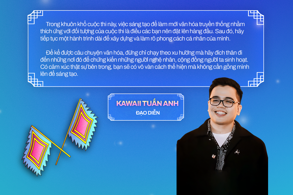 Đạo diễn “Made in Vietnam” cũng dành lời khuyên thực tế cho các thí sinh: đừng chỉ “Google” và dừng lại ở những thông tin bề mặt. Văn hóa cần được trải nghiệm trực tiếp: hãy đi, hãy sống cùng không gian, con người, nghi lễ và tập quán để chạm được vào phần “hồn” sâu nhất. Chỉ khi ấy, sản phẩm sáng tạo mới thực sự có chiều sâu và chạm tới trái tim công chúng.