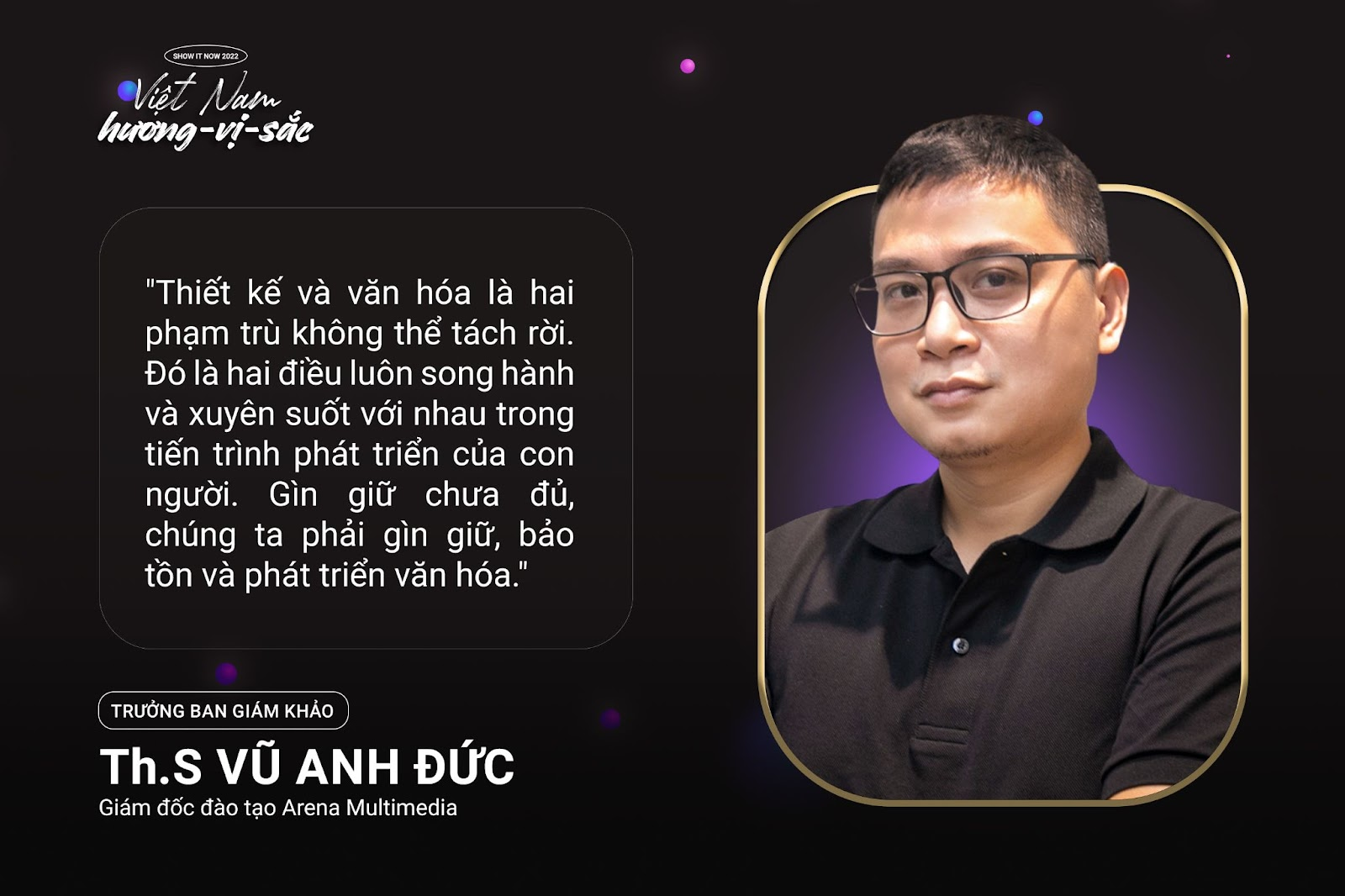 Trưởng ban giám khảo Show It NOW 2022 – Thạc sĩ Vũ Anh Đức thẳng thắn đưa ra lời khuyên với những thí sinh muốn tham gia cuộc thi nói riêng và các bạn trẻ mong muốn theo đuổi ngành Multimedia Design nói chung: “Quan trọng nhất trong sáng tạo và tư duy thẩm mỹ là các bạn phải biết giới hạn. Đôi lúc sử dụng màu quá tươi hoặc quá tối cũng có thể làm hỏng bức ảnh. Vì vậy, bạn cần phải hiểu rõ bạn cần gì, muốn gì thì mới thổi hồn vào tác phẩm được.