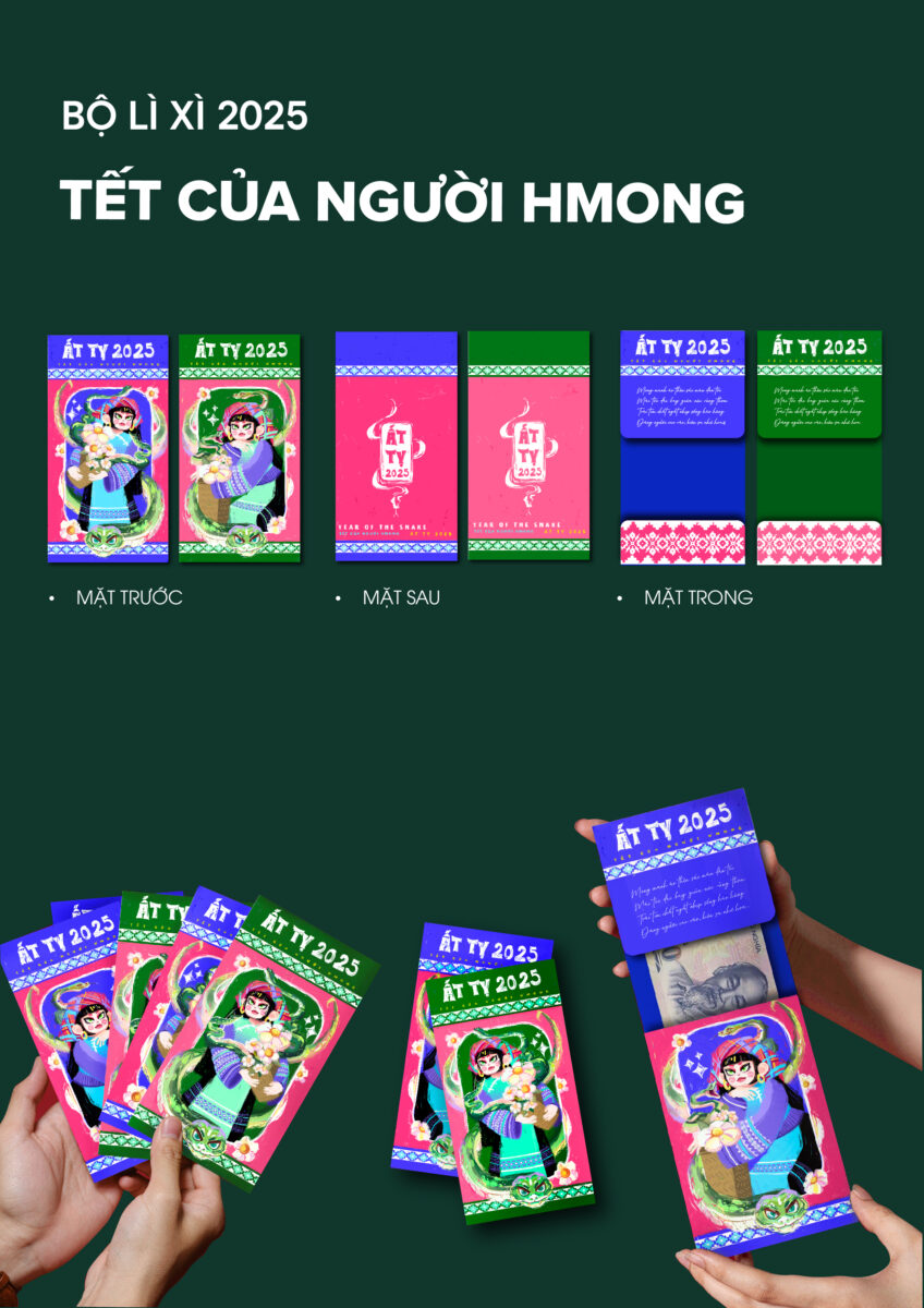 Thông điệp mà bộ lì xì muốn gửi gắm là: Nét đẹp văn hóa truyền thống của người Việt Nam vẫn luôn là nguồn cảm hứng sáng tạo bất tận và không ngừng sống động trong thế giới hiện đại. Mình mong rằng qua thiết kế này, người xem sẽ có thêm một góc nhìn mới lạ độc đáo về những giá trị văn hóa H’Mông – một nét đẹp trong bức tranh đa dạng của dân tộc Việt Nam.
