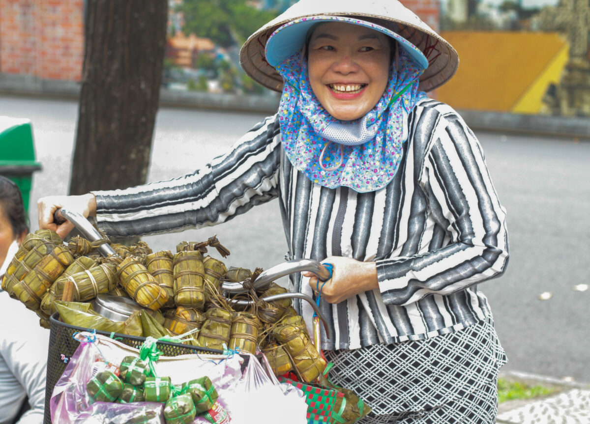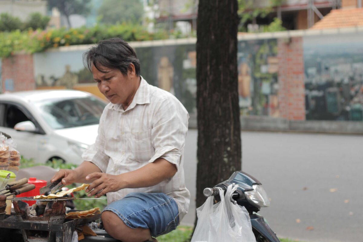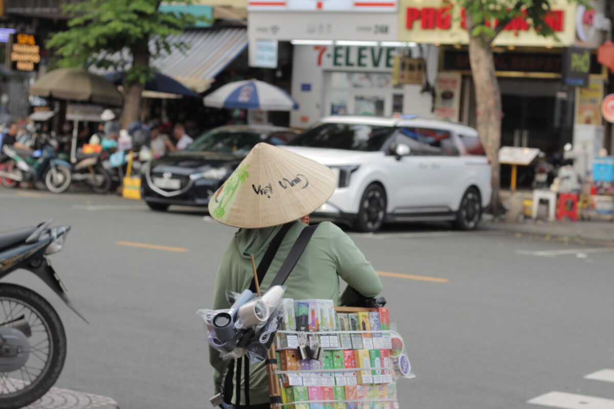 Tác phẩm 5: “Tiếng rao trong ngõ nhỏ” – Được chụp tại chợ Bến Thành, tiếng rao mộc mạc của cô bán dạo vang lên giữa dòng người tấp nập, như nhịp điệu quen thuộc của Sài Gòn xưa và nay.
