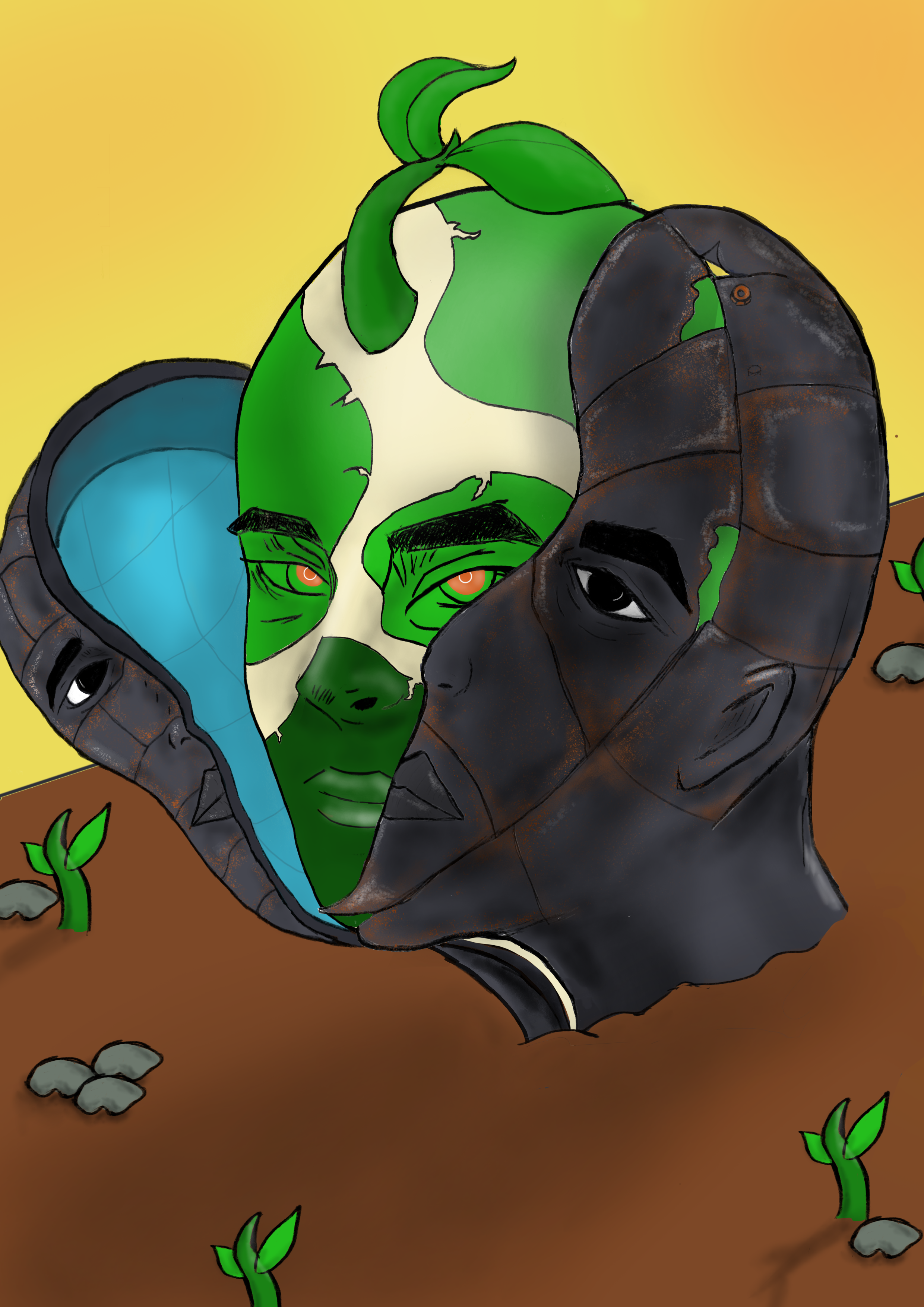 Ý tưởng đầu tiên của mình xuất phát từ việc nảy mầm của các loài từ vật là giá đỗ. Dựa trên việc nảy mầm thì mình lòng ghép hình ảnh con người vào nhầm truyền tải thông điệp là mọi người hãy thay đổi hòa mình vào thiên nhiên hãy thoát khỏi vỏ bọc cũ để thay đổi và cùng nhau phát triển một cách an toàn và toàn vẹn nhất, giữa con người và thiên nhiên.