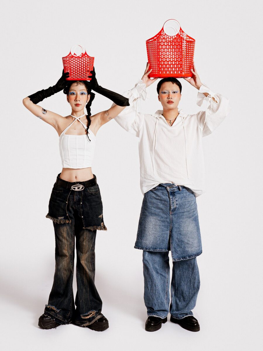 Bộ ảnh “Asian Dops Bag” là một cuộc chơi giữa thời trang, văn hoá và ký ức tập thể của người châu Á. Tâm điểm là chiếc túi nhựa lưới màu đỏ, một vật dụng dân dã, quen thuộc với hầu hết người Việt và nhiều nước Á Đông. Nó thường xuất hiện trong các khu chợ, siêu thị bình dân, hay trong đời sống hằng ngày – là biểu tượng của tính tiện dụng, bình dân và ký ức của thời thơ ấu. Khi chiếc túi ấy được đặt trong bối cảnh thời trang mang tính nghệ thuật, cùng với trang phục hiện đại, kiểu tóc và makeup có phần siêu thực, nó tạo nên một độ lệch thẩm mỹ thú vị: vừa hài hước, vừa châm biếm nhẹ, vừa gợi nên sự tự hào về cái “đời thường” của người Á Đông. Chiếc túi đỏ trở thành trung tâm của mọi khung hình. Dù được đội lên đầu, cầm trên tay hay đặt trên sàn, nó luôn là vật thể “nói nhiều nhất”, tượng trưng cho căn tính châu Á hiện đại, nơi truyền thống và thời trang giao thoa. “Asian Dops Bag” vì thế không chỉ là một bộ ảnh thời trang, mà là một tác phẩm thị giác đậm chất văn hoá, nơi chất đường phố, châm biếm và tự tôn dân tộc giao hòa. Nó kể về cách thế hệ trẻ nhìn lại quá khứ, không né tránh sự bình thường, mà tôn vinh nó bằng ngôn ngữ sáng tạo của nghệ thuật đương đại.