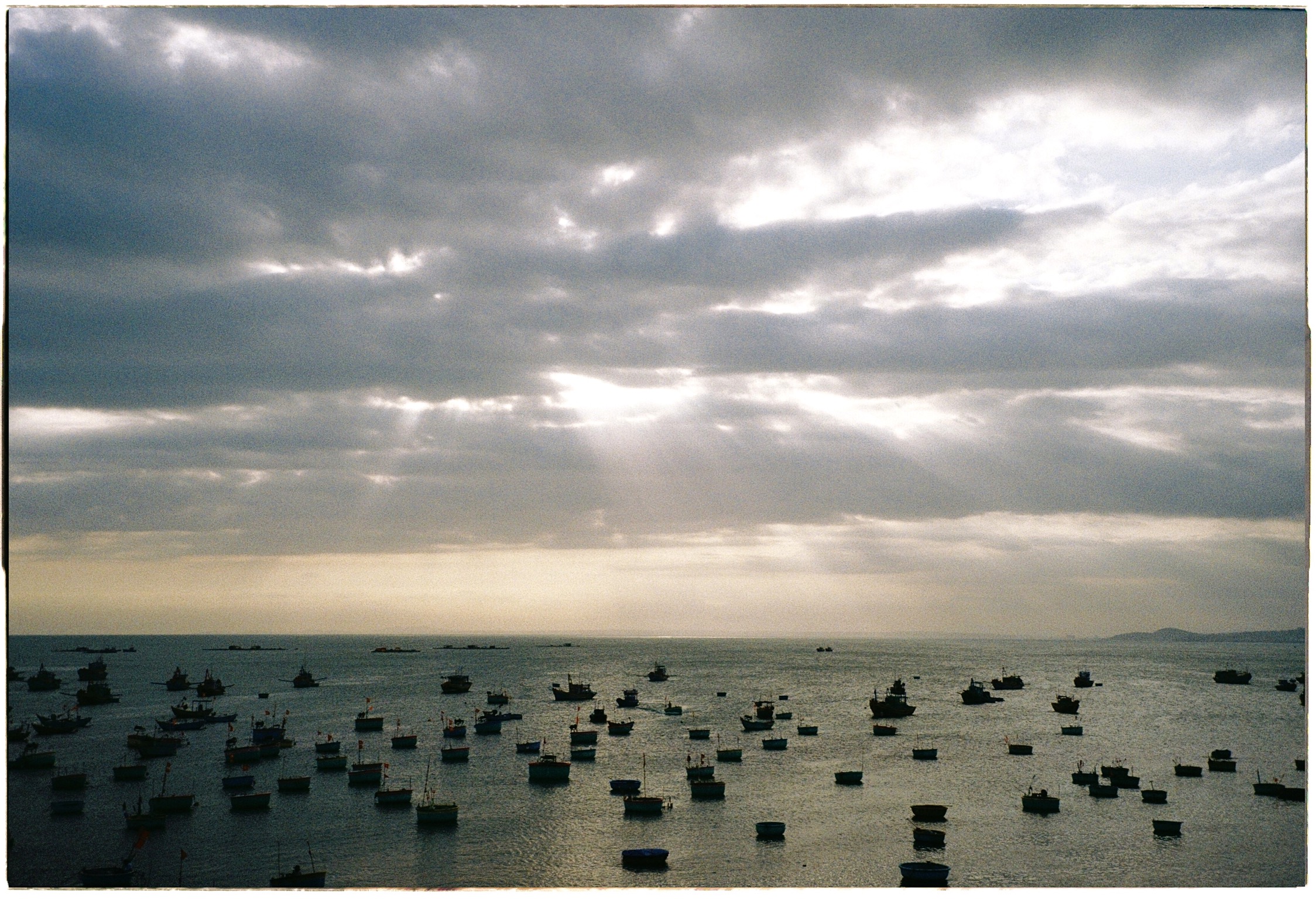 Được sinh ra ở vùng đất nắng vàng, gió mặn và cát trắng, cuộc đời mình dường như đã gắn liền với biển. Biển mang hương muối nhẹ, vị mặn và sắc xanh, là cội nguồn của mọi sự sống trên Trái Đất nói chung và sự phát triển của Việt nam ta nói riêng, có lẽ vì thế mà hình ảnh những chiếc xuồng đánh cá xếp thành lớp đã khiến mình phải chụp lại một cách cẩn thận. Bức ảnh được chụp vào một chiều đông tháng 12, khi mà cái không khí se lạnh đã đến và cơn mưa bất chợt kéo đến, mình đã dùng chiếc máy film yêu thích, chụp bằng film Kodak Gold để lưu lại những vệt nắng cuối ngày, khi hoàng hôn đã gần buông xuống.