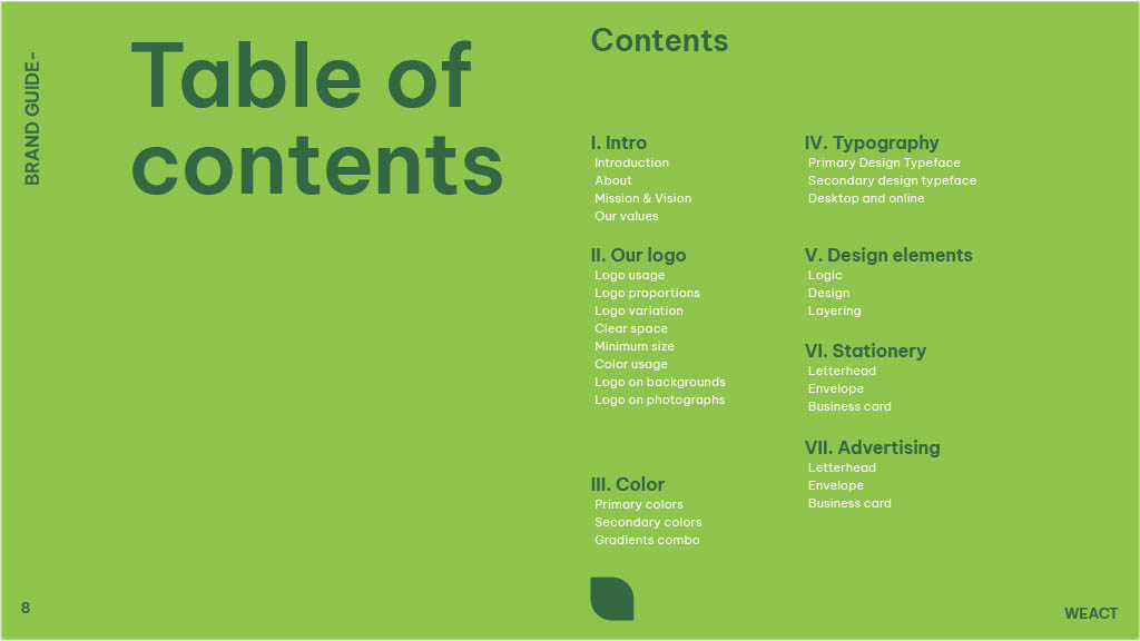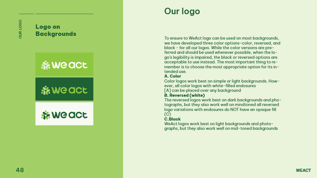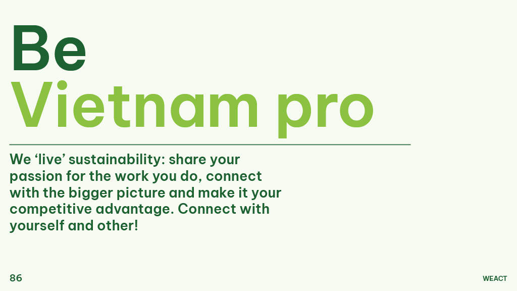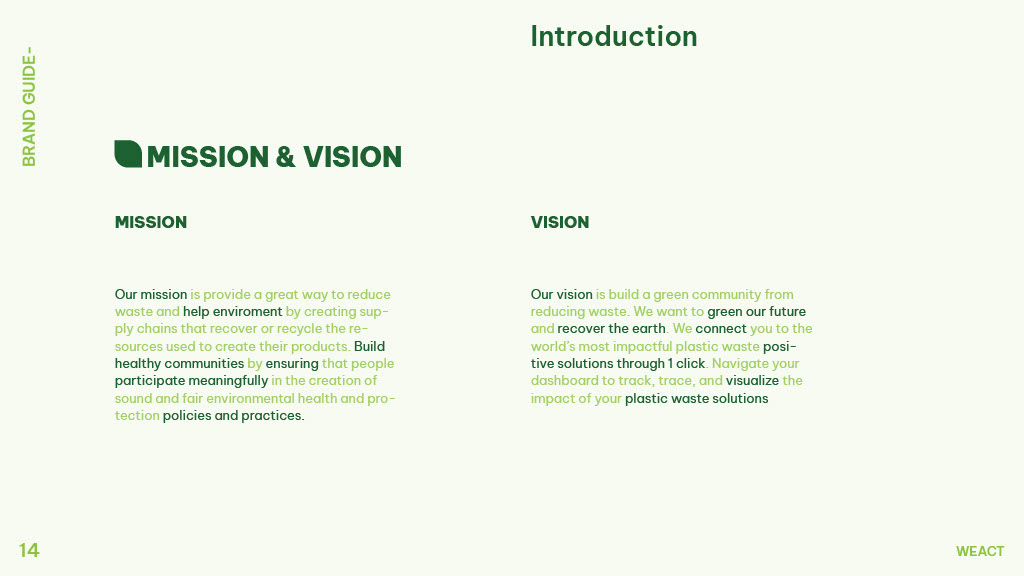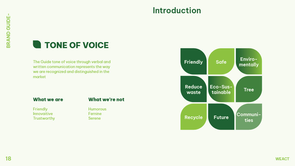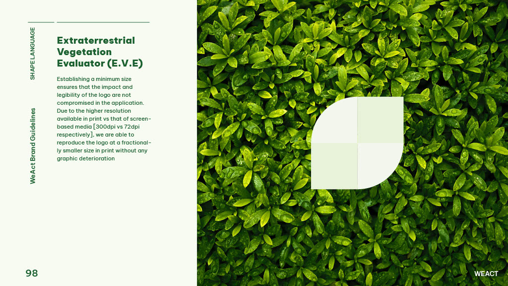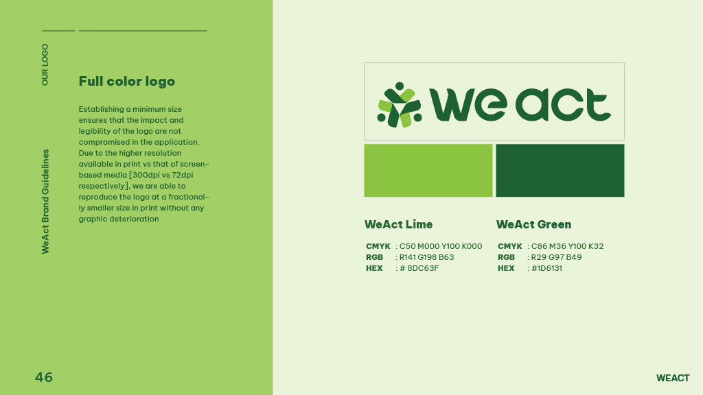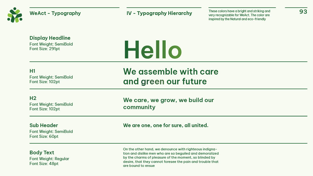 Ý tưởng của mình là một bộ branding kế thừa tinh thần của WeEarth, là WeAct hay ý là hành động của chúng ta đó là một tổ chức kết nối cũng như xây dựng cộng đồng nâng cao ý thức về hành động của mình có ảnh hưởng đến môi trường. Mình mong muốn bộ brand này có tính cách thân thiện, hiện đại, tối giản nhưng không quá nghiêm túc để tạo sự thân thiện của một tổ chức về vấn đề môi trường hơn. Logo của mình là cách điệu từ hình ba người đang dang tay lên xếp thành hình tròn của trái đất như câu ca dao tục ngữ “một cây làm chẳng lên non, ba cây chụm lại lên hòn núi cao” như một cách bản địa hoá bộ brand này. Bên cạnh đó giá trị mình muốn đem lại là tính cộng đồng, thân thiện, và vì môi trường nên “key visual” và bộ font của mình được thiết kế riêng lấy cảm hứng từ thiên nhiên nhằm phục vụ ý đồ của mình cũng như để nó phù hợp với tinh thần mình muốn thể hiện qua đề tài năm nay. Bên cạnh đó mình có sản xuất một “key visual” riêng để nhằm thừa kế hoá tinh thần của WeEarth để lại bằng cách tạo hình chú bướm như một “optional choice” cũng như do hạn hẹp về thời gian và sức lực nên mình chưa thể thật sự bộc lộ hết toàn bộ những gì mình có thể làm nên mong mọi ng bỏ qua thiếu sót.