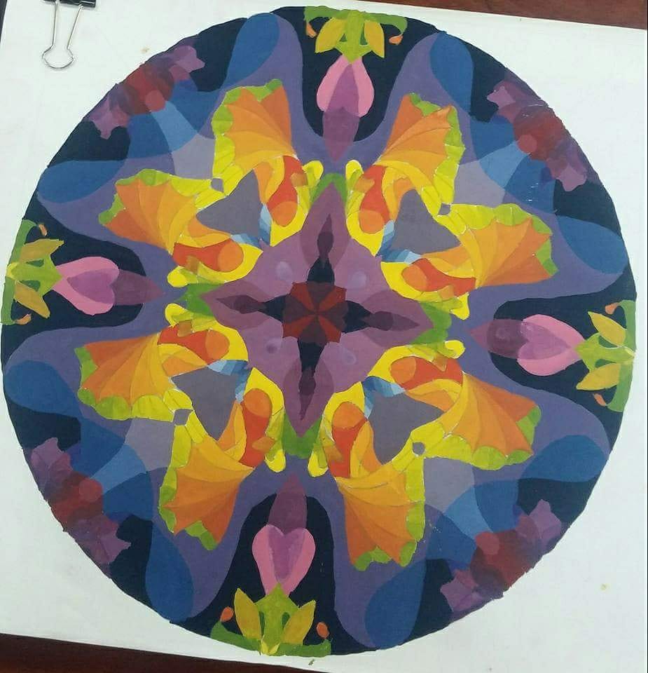 Bài vẽ trang trí màu đầu tay tự thực hiện với không sự trợ giúp, không bản mẫu, không gợi ý, thứ trên tay cầm chỉ là bảng màu, vòng thuần sắc, nguyên lí màu. Bức tranh này rất có ý nghĩa với tôi.