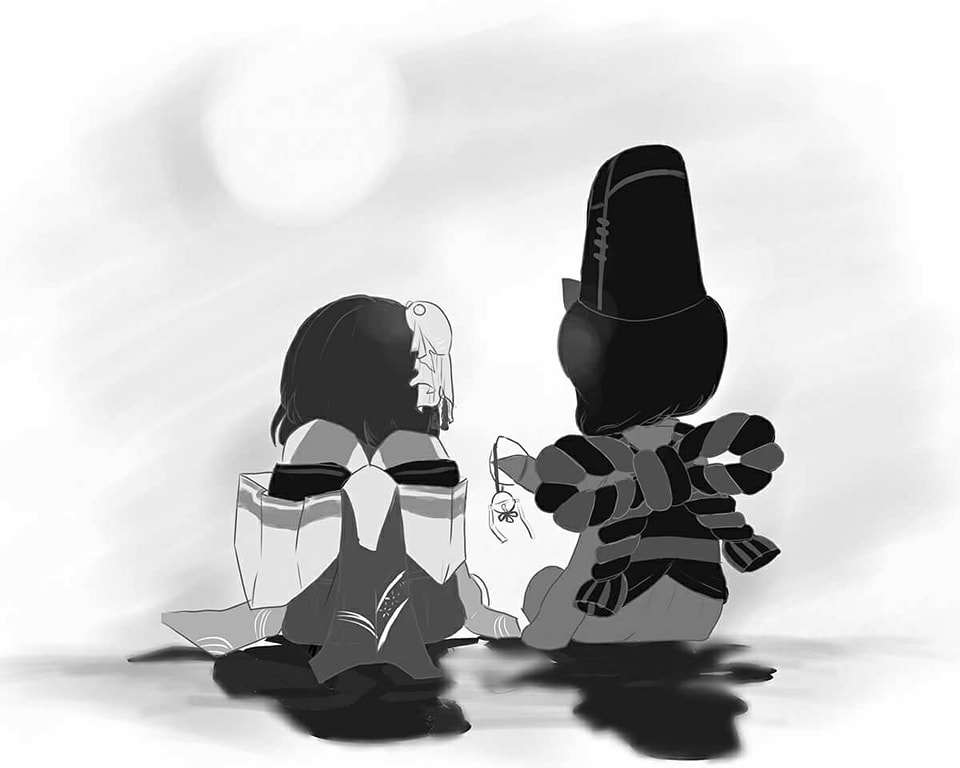 Bức tranh đơn thuần chỉ là fanart cho nguyên tác “Ma đạo tổ sư” (hiện đang quay chụp với tên “Trần Tình Lệnh”), điểm quan trọng của bức tranh này lại là cây đàn mà hai nhân vật cầm trên tay – đó là “Dạ Vũ Thấm Hà”, nó là trang sức sẽ khác tên mình và người yêu trên đó, tương truyền, vì âm thanh của tiếng cầm nghe tựa như âm thanh mưa rơi trong đêm, nên gọi “Dạ Vũ Thám Hà”.