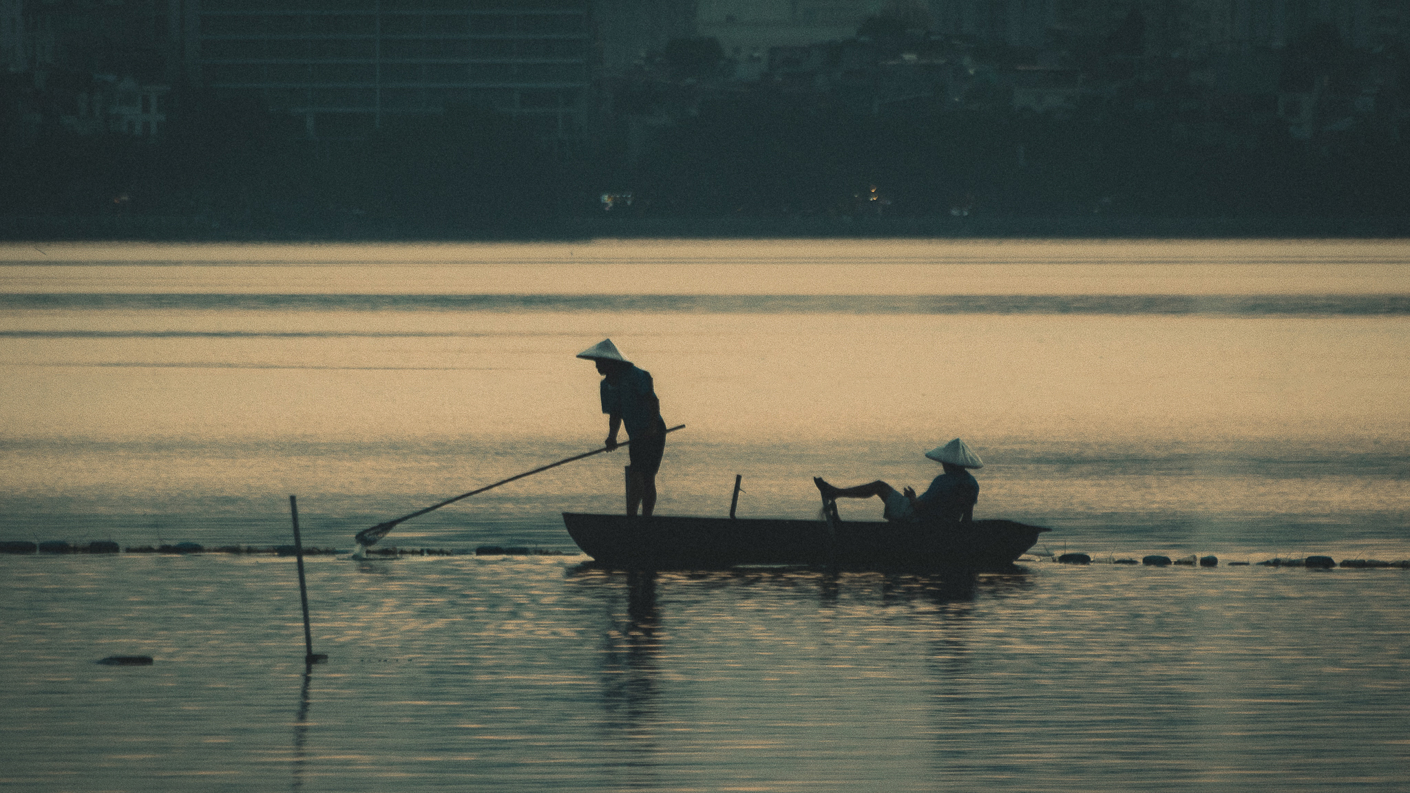 Đây là bức ảnh chụp hai người dân đánh cá đang vớt rác ở mặt Hồ Tây trong buổi chiều tà. Một khoảnh khắc đời thường, nhưng cũng là một hành động mang ý nghĩa bảo vệ môi trường, nhất là khi tình trạng ô nhiễm sông, hồ, ao, suối ở Việt Nam đang ngày càng nghiêm trọng. Mỗi hành động, dù chỉ là nhỏ thôi, cũng sẽ góp một phần công sức bảo vệ và làm đẹp cho môi trường sống xung quanh ta.