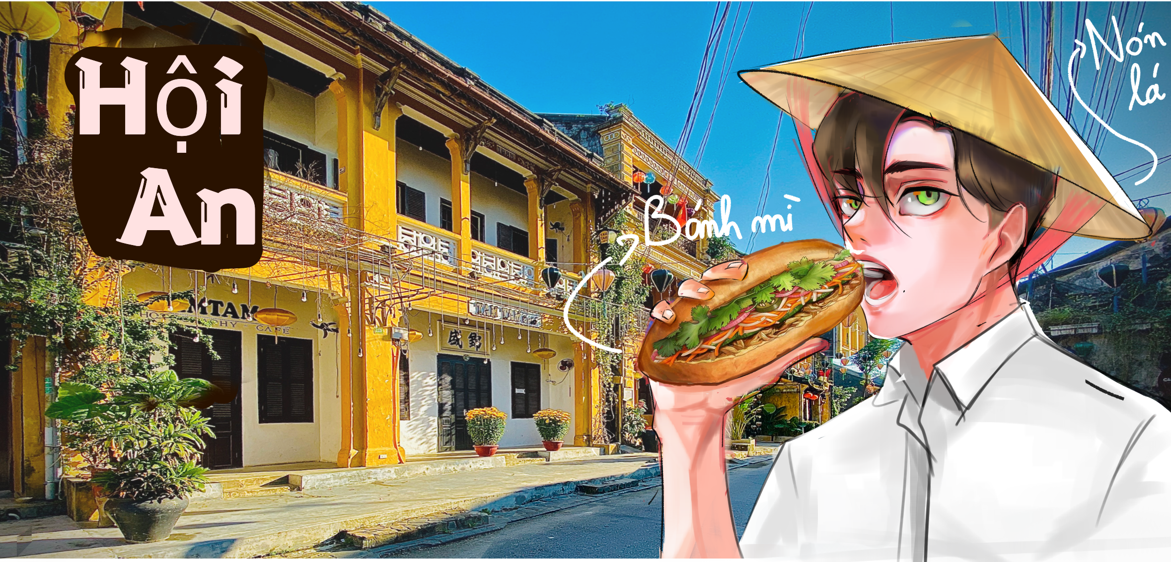 TRAI ĐẸP ĐỘI NÓN LÁ ĂN BÁNH MÌ TRÊN PHỐ HỘI AN