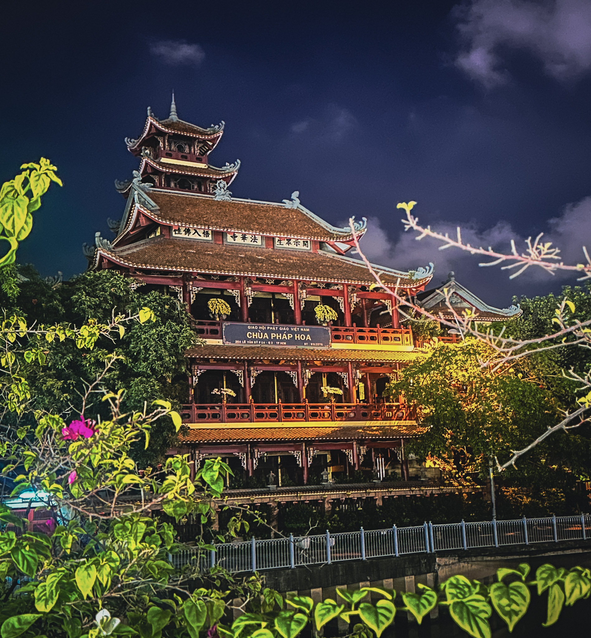 Tác phẩm “Cảnh Đêm Thiền Định” là một nỗ lực ghi lại sự uy nghiêm, tĩnh lặng của Chùa Pháp Hoa (TP.HCM) vào buổi tối. Tôi thực sự yêu thích những khoảnh khắc đặc biệt của thiên nhiên và con người, nhưng điều kiện hiện tại chưa cho phép nên tất cả các ảnh đều được chụp bằng điện thoại của mình và chỉnh sửa qua ứng dụng Lightroom. Các tác phẩm được chụp ở Chùa Pháp Hoa ở Phường Nhiêu Lộc, hay còn gọi là Chùa Pháp Hoa Lê Văn Sỹ.
