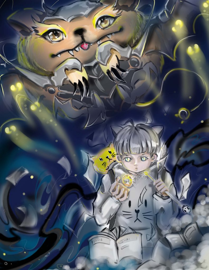 Khắc họa lại hình ảnh thời thơ ấu hay mơ tưởng về những màu sắc của lọ thuốc hóa học, những cành cây có hình thù đẹp để dùng làm gậy phép thuật cùng chơi phép thuật với mấy đứa bạn hàng xóm đã được mình tái hiện lại khung cảnh, một ước mơ khó hiện thực này được vẽ lên những mơ ước qua sự tưởng tượng trên Digital Painting.