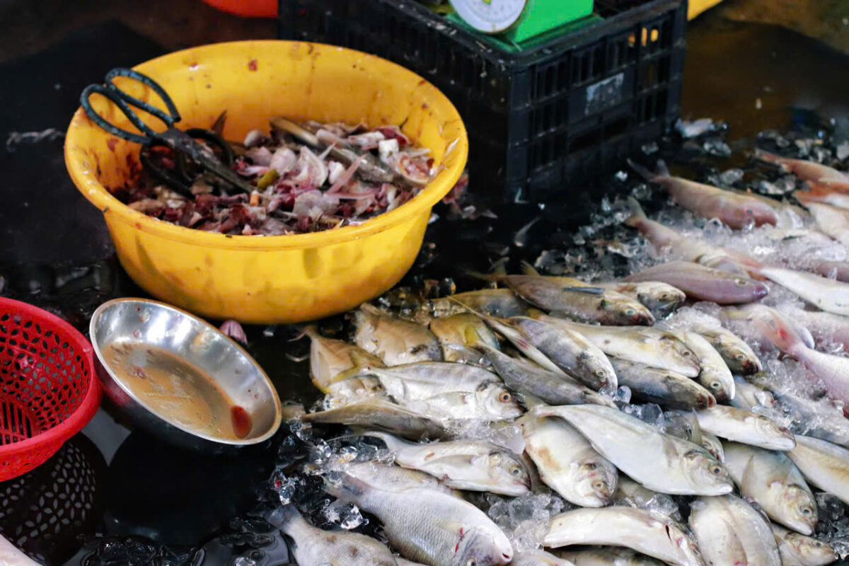 - Tác phẩm 4: Chụp cận cảnh tập trung vào những con cá xếp ngay ngắn trên đá lạnh và thau chứa phần dư thừa của cá. Cái kéo, chiếc cân, cái thau, vảy cá gợi lên nhịp sống lao động miệt mài, cần mẫn. Dù là đàn ông, anh vẫn chỉn chu, khéo léo, thể hiện sự duyên dáng trong công việc.