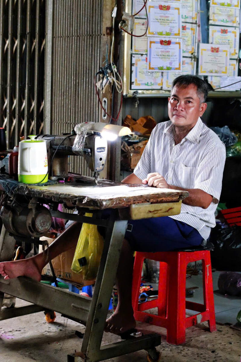 - Tác phẩm 3: Chụp chân dung chú Hiệp, một người cha nghị lực. Chú Hiệp ngồi bên chiếc máy khâu cũ. Phía sau lưng chú là những tấm giấy khen của con, đó là niềm tự hào và động lực. Dù đôi chân không lành lặn, chú vẫn đứng vững bằng đôi tay và trái tim đầy nghị lực.