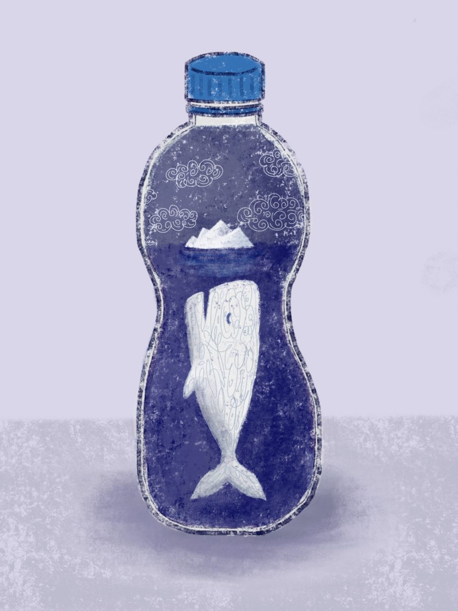 Chúng ta dễ thỏa hiệp với những điều trước mắt là dễ dàng, tiện lợi cho bản thân. Việc sử dụng chai nhựa dùng một lần rất rất tiện lợi. Tuy nhiên, việc nó bị vứt ra môi trường sau khi sử dụng và tồn tại ở đó đến cả chục năm, trăm năm đã và đang phá hoại môi trường cách khủng khiếp. Một chai nhựa, nghe có vẻ ít ỏi và chẳng ảnh hưởng gì, nhưng khi 8 tỉ người trên tinh cầu này đều nghĩ như vậy, thì tác hại của “1 chai nhựa” đó đến môi trường đáng sợ biết bao. Cuộc sống của nhiều loài sinh vật biển đang bị tổn hại, bị đe doạ, thậm chí bị đẩy đến bờ vực, vì “một chai nhựa” của chúng ta. Đó là ý tưởng của tôi khi thực hiện tác phẩm này. Mong rằng qua nó, những người xem tranh sẽ thay đổi thói quen sử dụng đồ dùng của mình, thay thế chai nhựa bằng các loại có thể sử dụng nhiều lần khác, để cùng nhau, chúng ta sửa chữa sai lầm đối với môi trường và bảo vệ, gìn giữ thay vì làm tổn hại nó.