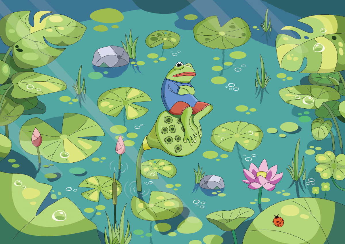 Đây là tác phẩm được lấy cảm hứng từ một khung cảnh có thật. Hình ảnh chú ếch ngồi thẫn thờ trên chiếc đài sen với cảnh vật xung quanh rất trong lành và mát mẻ. Hình ảnh ấy gợi ra cho ta thấy được rằng có vẻ như chú ếch đang buồn bã vì một ngày không xa.