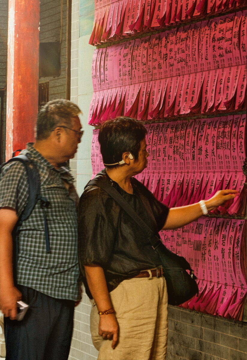 Tôi không tìm kiếm sự trang trọng, mà muốn phơi bày sự tương phản giữa không gian cổ kính, đầy khói hương cuộn tròn, với những con người đang hiện diện. Ở đó, có sự thành kính không lời của người lớn tuổi quỳ lạy, đại diện cho một thế hệ gắn bó trọn đời với niềm tin. Song hành là sự xuất hiện của người trẻ thắp hương, đặt ra câu hỏi về ý nghĩa thực sự của hành động đó trong bối cảnh hiện đại. Văn hóa không chỉ ở chi tiết mái đình hay lư hương, mà còn nằm trong những tấm thẻ hồng ghi danh, minh chứng cho việc ký ức tổ tiên và niềm hy vọng vẫn được lưu giữ qua từng cái tên. Bộ ảnh muốn kể một câu chuyện rằng, những giá trị truyền thống này vẫn đang tồn tại mạnh mẽ, chờ đợi một cái nhìn sâu sắc và sự kết nối chân thành từ thế hệ mai sau để được mang theo ra khỏi cánh cổng di sản và hòa vào dòng chảy đời sống mới.