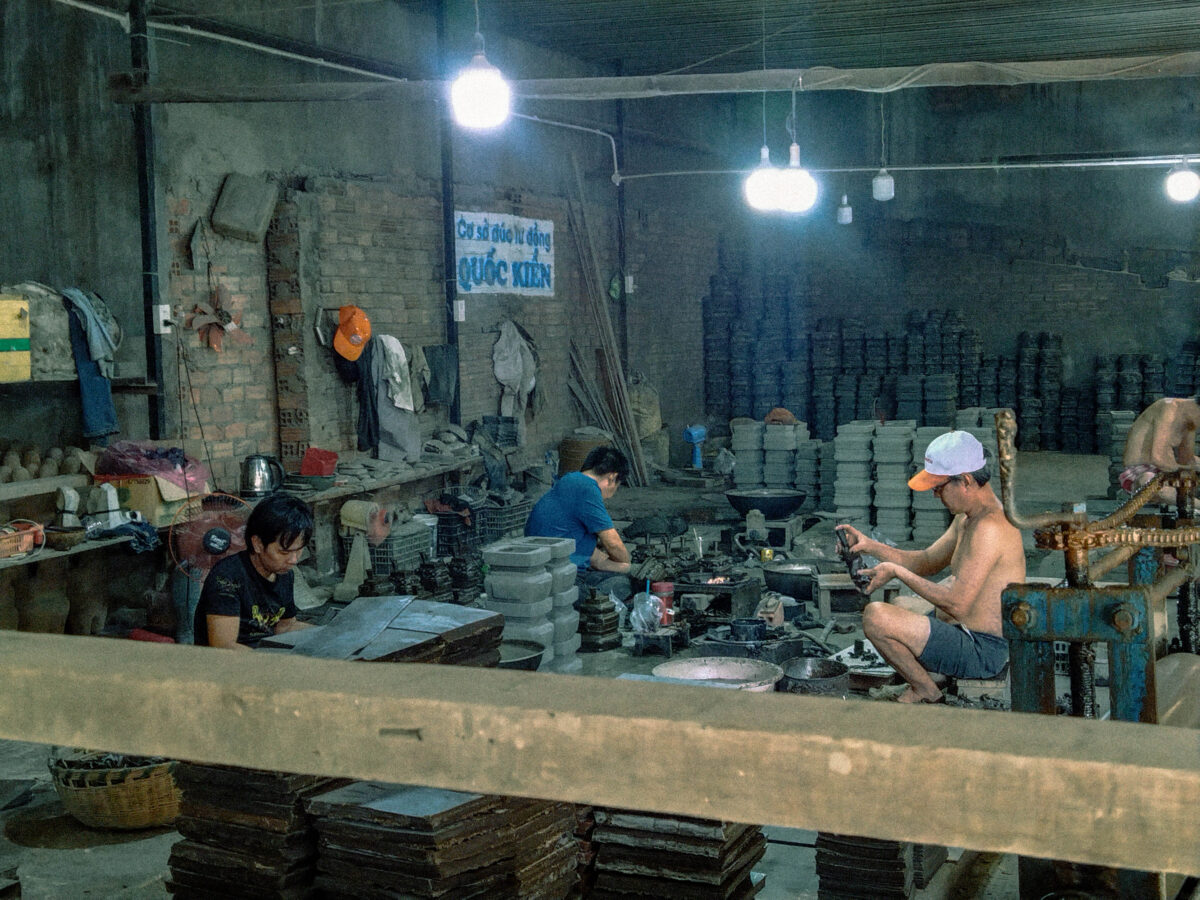 Giữa nhịp sống hối hả của Sài Gòn, vẫn có một góc nhỏ yên bình – nơi lửa đỏ và tiếng búa vang lên không ngừng trong xưởng đúc lư đồng. Thông qua những khung hình chân thực, bộ ảnh khắc họa quá trình tạo tác lư đồng từ khuôn cát thô sơ cho đến hình hài sản phẩm đang dần thành hình. Mỗi chi tiết – từ lớp cát phủ dày đặc, những phôi đúc xếp chồng, đến đôi bàn tay tỉ mỉ của người thợ – đều phản ánh tinh thần lao động cần mẫn, sự kiên trì và tay nghề khéo léo được truyền qua nhiều thế hệ.