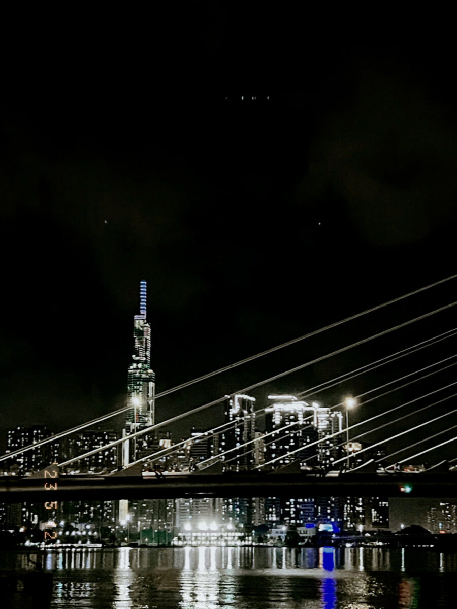 Tác phẩm 4: Làn sương mỏng giăng ngang đỉnh tòa nhà như một tấm màn mờ che phủ những câu chuyện phía sau. Thành phố vẫn lung linh, nhưng đâu đó là khoảng trống – nơi ánh sáng không chạm tới. Một khung cảnh vừa lãng mạn, vừa lạnh lẽo.
