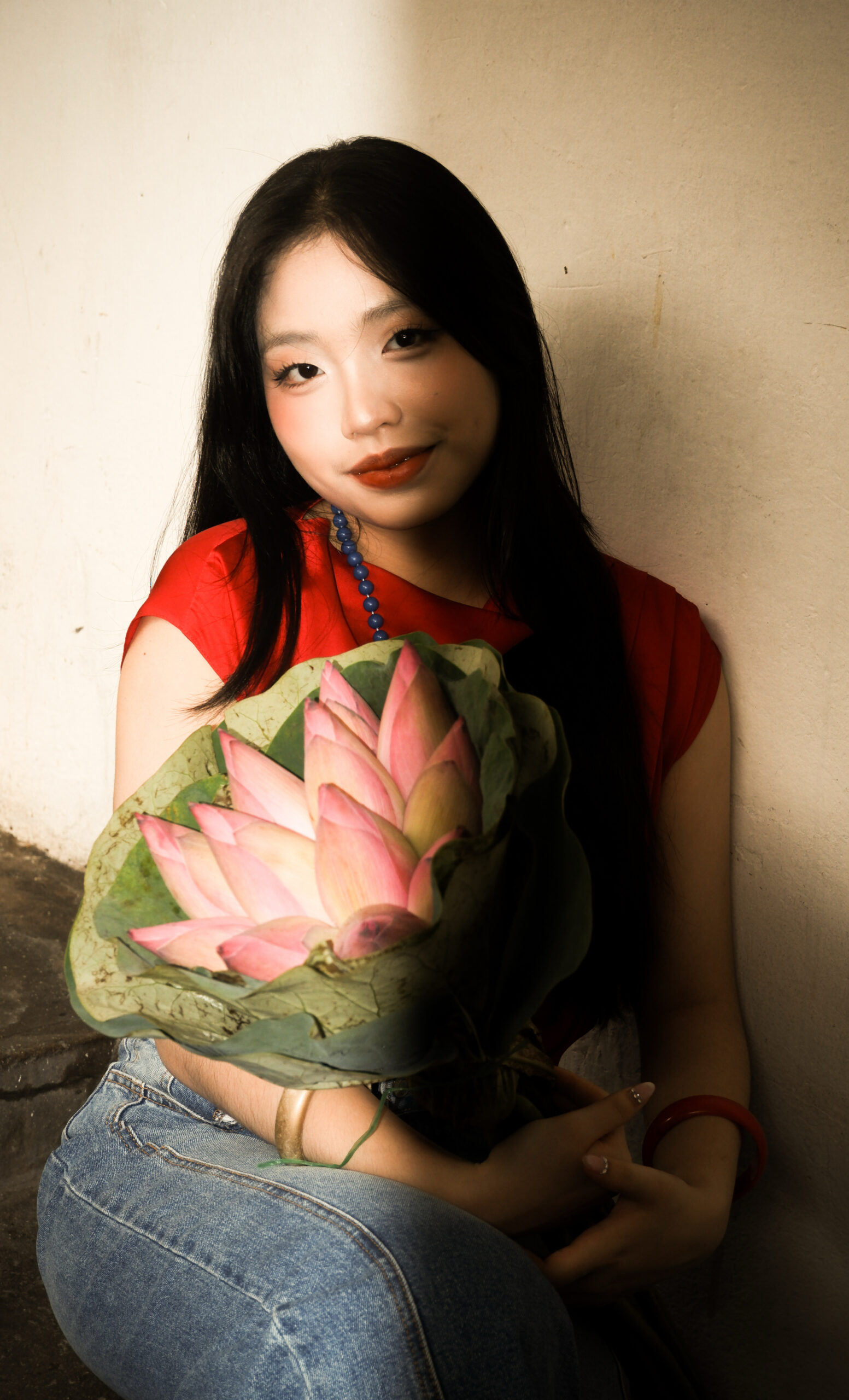 Thông qua trang phục, phụ kiện và bó hoa sen, em muốn khắc họa vẻ đẹp thướt tha, duyên dáng của người con gái Việt, hòa cùng nét đặc trưng của thời kỳ ấy để tạo nên cảm giác như một cuộn phim cũ sống lại giữa hiện tại. Với chủ đề “Re:Imagine” năm nay, em muốn mang lại hơi thở của hình bóng cổ xưa, đầy hoài niệm của Việt Nam, trong đó có một chút pha lẫn hiện đại như một lát cắt của thời gian vẫn đang sống động trong ký ức.