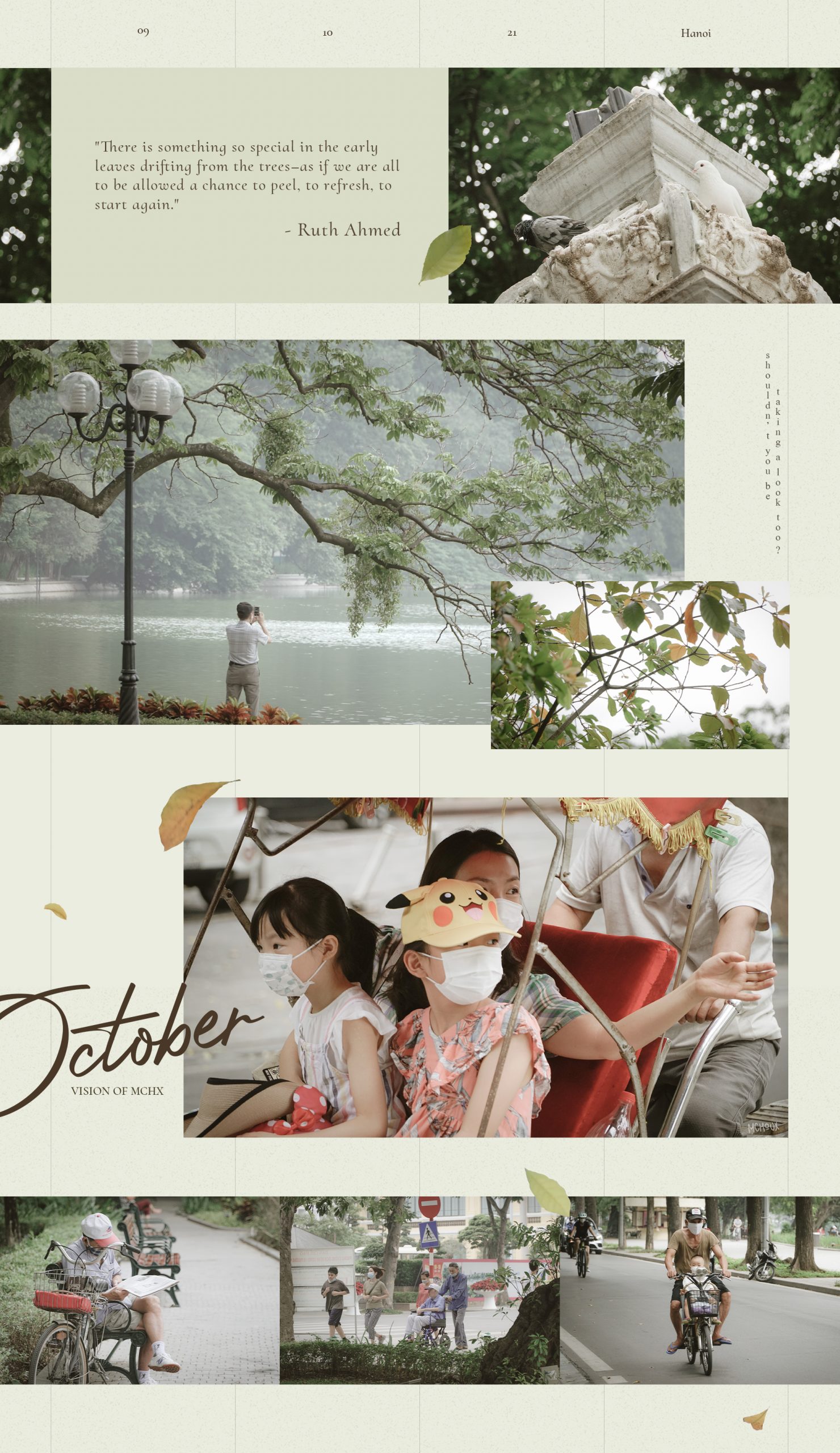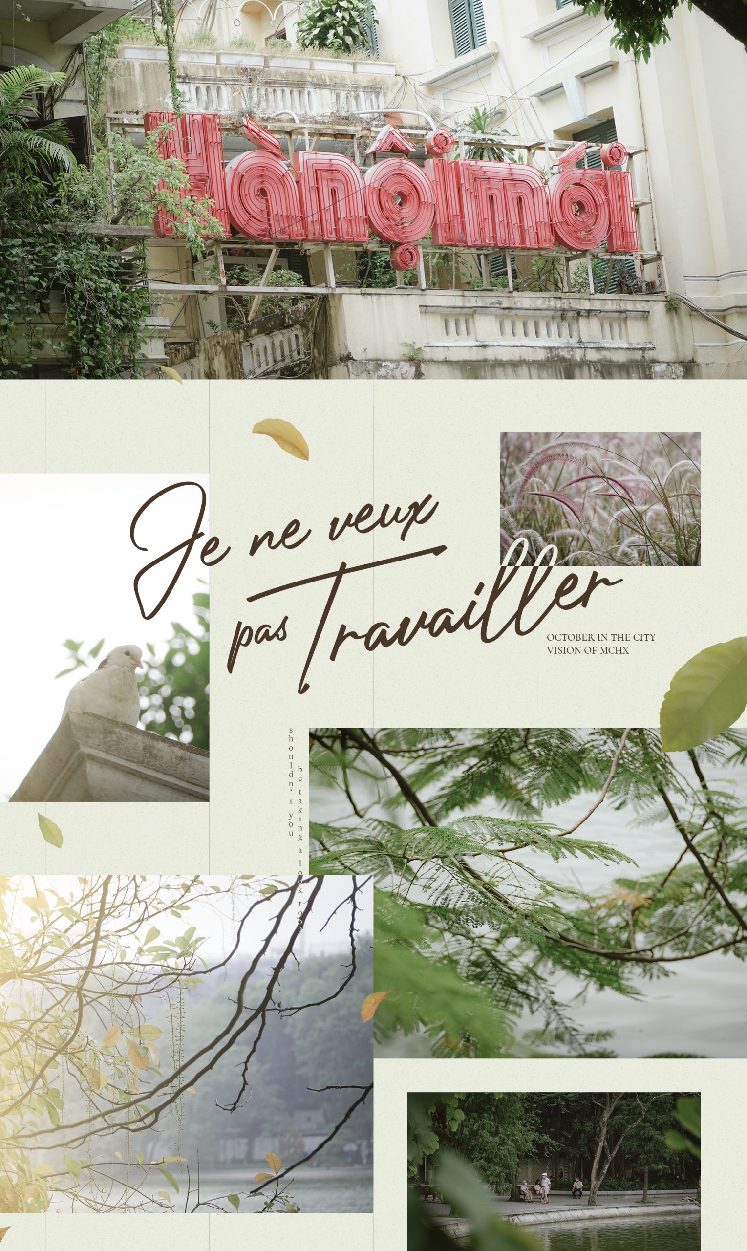 Vào thời điểm mình chụp bộ ảnh này, mình đang gặp peer-pressure khá nặng. Dường như thật khó để dung hòa giữa cuộc sống bình thản, an nhiên mà bản thân mong muốn, với cảm giác thiếu tự tin luôn hiện hữu khi nhìn sang những đồng bạn giỏi giang hơn. Mình nhìn vào thành phố thân thương này, và mình nhìn sâu vào chính mình, một người con của mùa thu Hà Nội, những mong có thể tìm thấy câu trả lời cho sự băn khoăn bấy lâu.