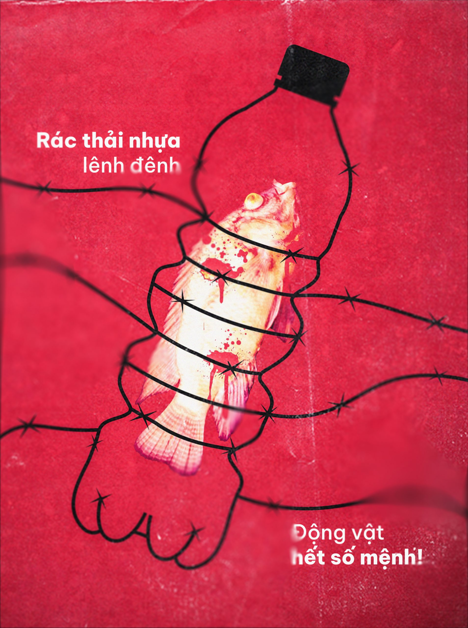 Rác thải nhựa ngày càng trở thành vấn đề nghiêm trọng của cả thế giới. Chúng có thể một công đôi việc nhờ chữ “Tiện” của loài người. Mỗi chai nhựa có thể tồn tại 500 năm, hàng nghìn chai như vậy thì đến bao giờ mới kết thúc. Chúng phá hủy môi trường nước, không khí và đất, gây ra biến đổi khí hậu. Chính vì sự cấp bách đó, đã là cảm hứng cho mình phát triển bộ poster “Kìm” này. Hình ảnh 1 là con cá bị mắc kẹt trong chai nước nhưng nó không đơn giản là thế. chai nước tượng trưng cho dây thép gai, những rào cản, cản chở kìm hãm sự sống của con cá nói riêng và cả một hệ sinh thái động vật nói chung. Hình ảnh 2 là con chim bị mắc kẹt trong bàn tay, con chim tượng trưng cho trái đất cho hệ sinh thái, với sự tự do của muôn loài, nhưng từ ngày rác thải nhựa của con người xuất hiện, những trai nhựa như quả tên lửa âm thầm lao đến và bóp nghẹt loài vật vô tội. Những vết thương của con cá do dây thép gai đâm, con chim chết tức tưởi nhưng là những nguy hiểm mà rác thải nhựa gây ra cx như rình tập bất cứ loài vật nào…Hãy hạn chế sử dụng rác thải nhựa, vì không xa chính chúng ta là nạn nhân đối diện với nó.