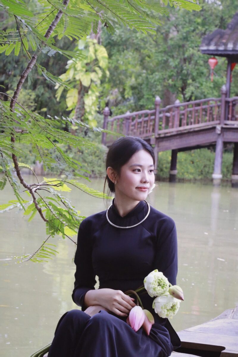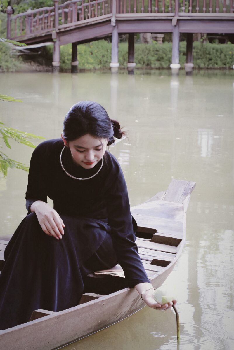 Tác phẩm được chụp ở Bảo Tàng Áo Dài – TP.HCM. Bức ảnh khắc họa hình ảnh người con gái mặc áo dài đen, tóc búi gọn, nhẹ nhàng chèo thuyền giữa dòng sông tĩnh lặng, tay cầm đóa sen hồng. Hình ảnh ấy gợi nên vẻ đẹp truyền thống, dịu dàng nhưng mạnh mẽ của người phụ nữ Việt Nam – mộc mạc mà sâu lắng. Tác phẩm muốn tôn vinh sự hòa quyện giữa con người và thiên nhiên, giữa nét cổ điển và tinh thần bình yên trong nhịp sống hiện đại.