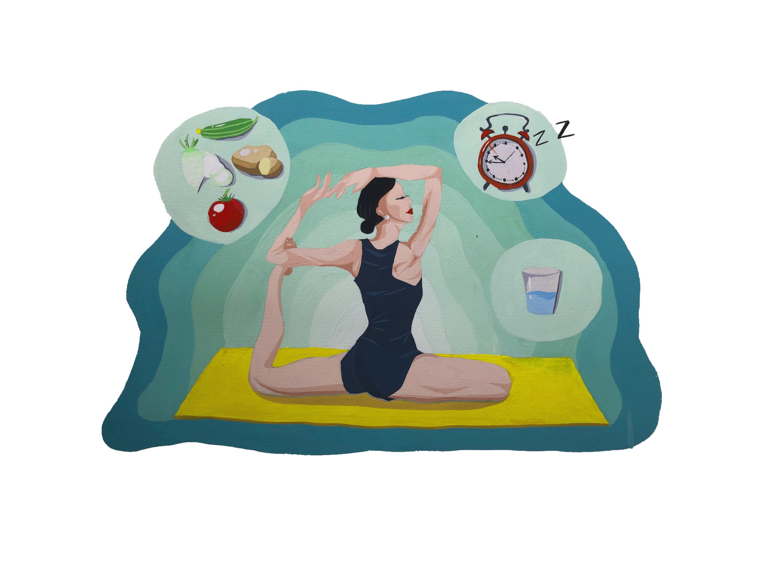 Trước tình hình đại dịch diễn ra nghiêm trọng, mọi hoạt động xã hội bị nghiêm cấm, đã vô hình chung tạo ra những thói quen xấu như thức khuya, lười vận động, ăn uống không lành mạnh,… cho bản thân mà chúng ta không thể lường trước được. Vì vậy, em thực hiện bức tranh này để truyền cảm hứng cho mọi người có động lực thay đổi thói quen của bản thân cũng như mục tiêu mà e muốn hoàn thiện.