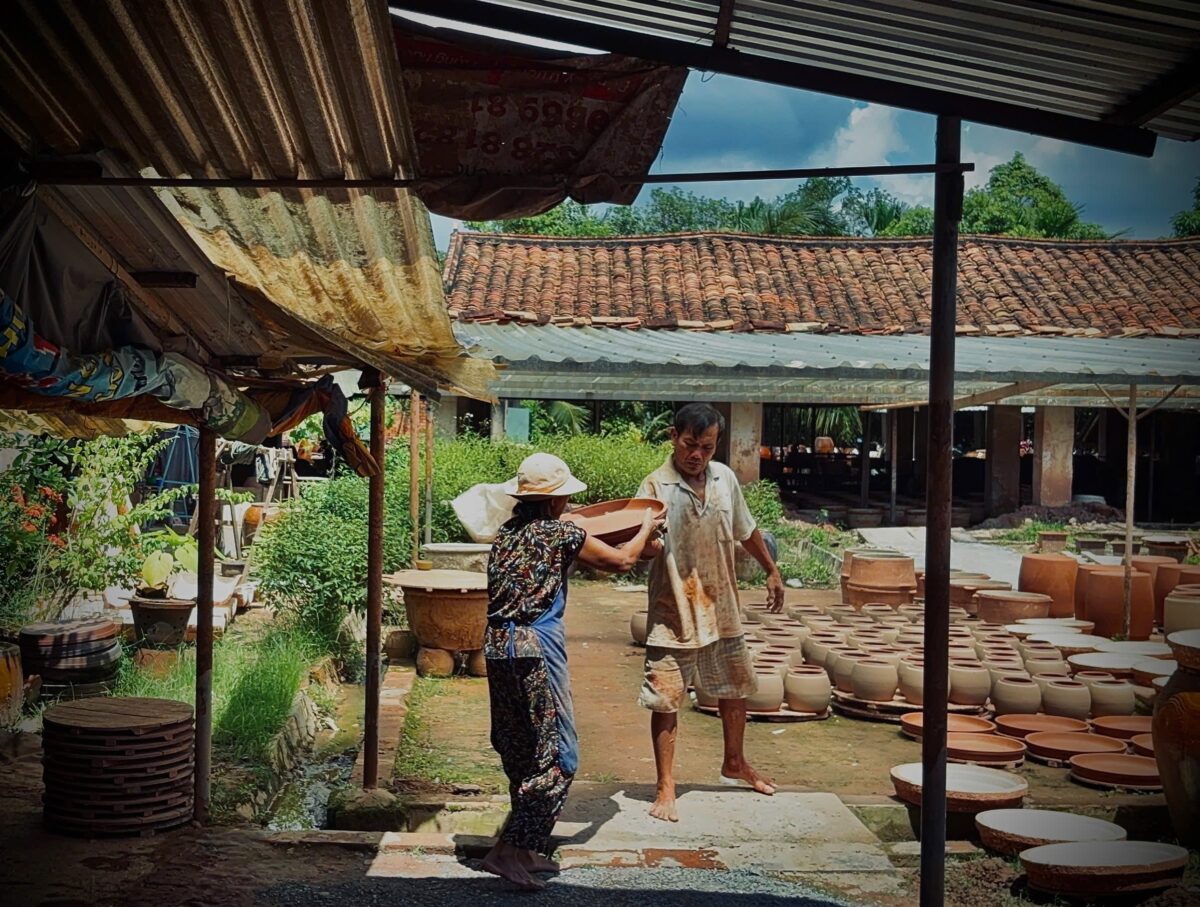 Dưới nắng trưa, đôi tay già nua nâng niu từng chiếc chậu đất nung còn thô ráp. Giữa họ, làng nghề vẫn sống – bằng tình yêu và ngọn lửa truyền đời không bao giờ tắt.