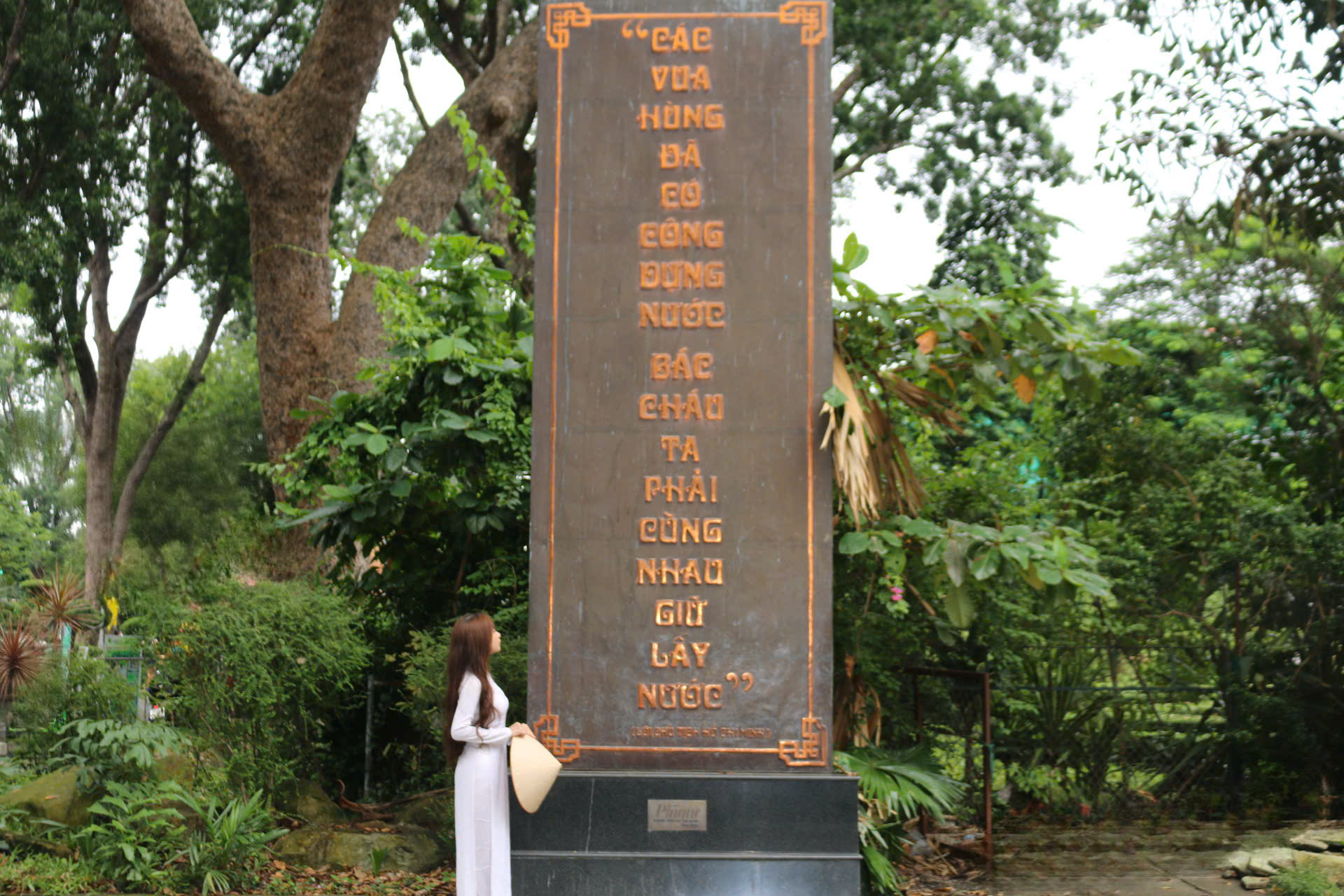 4. Bia đá lời dặn: Tấm bia khắc lời dạy của các Vua Hùng được đặt giữa không gian yên bình, biểu tượng cho trí tuệ và lời nhắn gửi trường tồn. Bức ảnh thể hiện sự kính trọng và biết ơn đối với cội nguồn nơi truyền thống dân tộc được gìn giữ qua từng thế hệ.