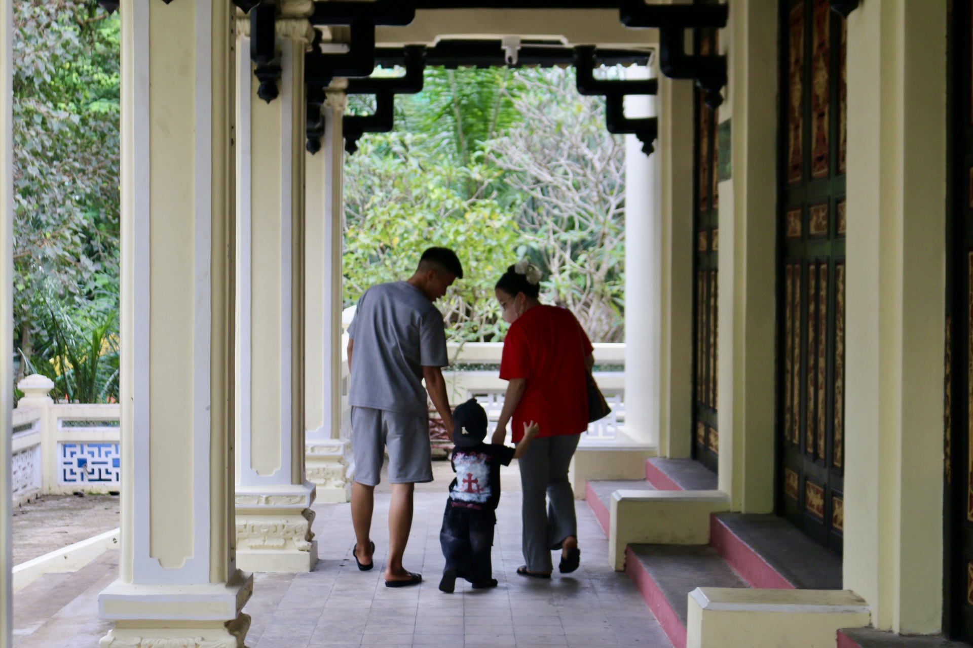 5. Sự kế thừa truyền thống: Bức ảnh khắc họa hình ảnh gia đình dắt tay con nhỏ vào đền – một khoảnh khắc đời thường nhưng giàu ý nghĩa. Đó là biểu hiện cho sự tiếp nối, ở thế hệ hôm nay tiếp nhận và truyền trao những giá trị cội nguồn cho tương lai.