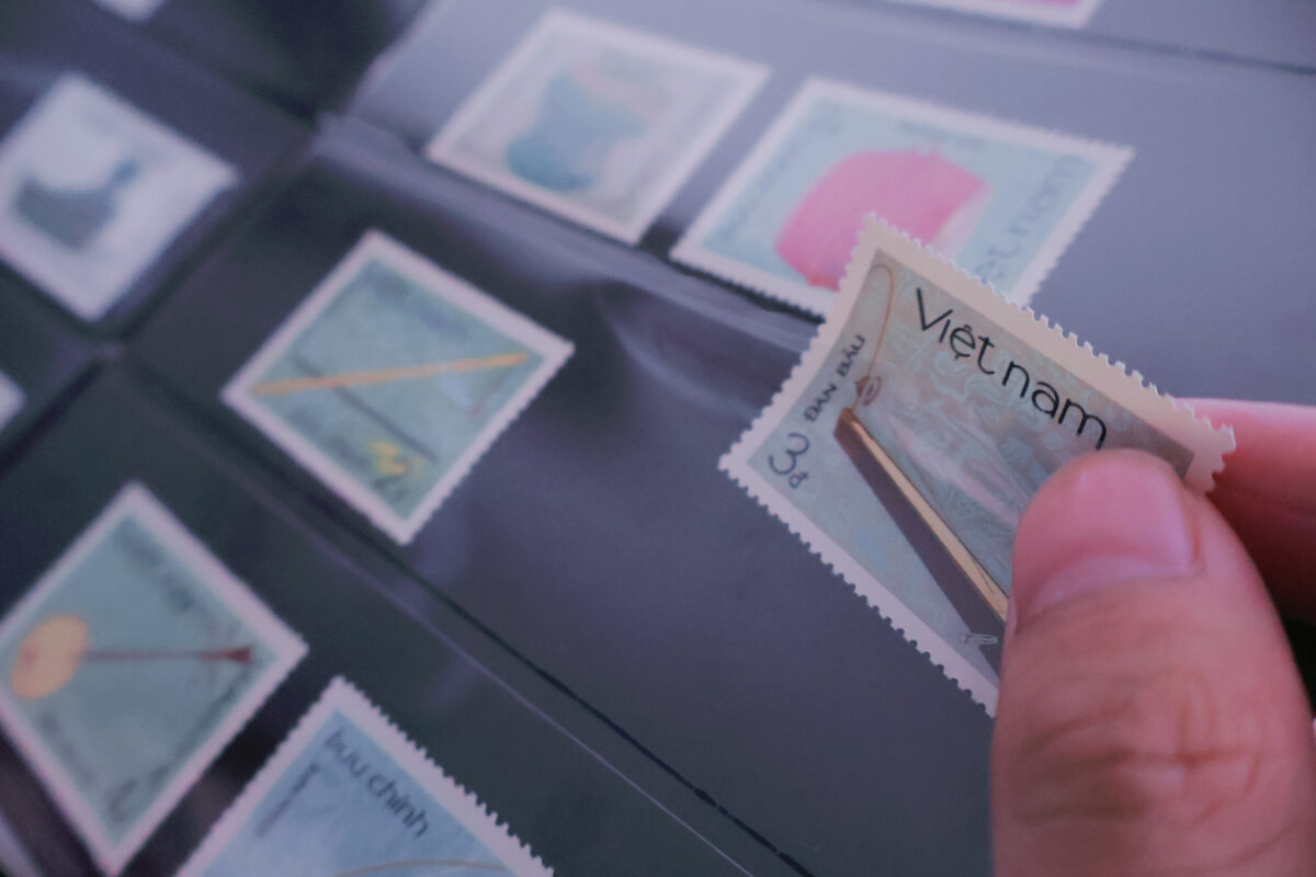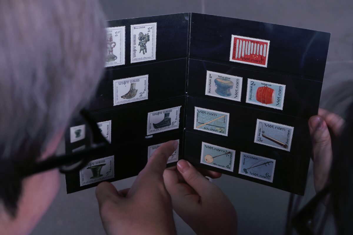 Trong không gian tĩnh tại của ký ức, một cuốn album cũ kỹ khẽ mở, hé lộ những ô vuông nhỏ bé nhưng chứa đựng cả một vũ trụ văn hóa. Mỗi con tem bưu chính, tựa hồ một “lời tự sự” thầm thì, được gửi gắm qua những hình ảnh khắc họa tinh hoa văn hóa và di sản Việt Nam. Từ dáng vẻ uy nghi của trống đồng ngàn năm đến sự thanh thoát của những nhạc cụ truyền thống, mỗi ấn phẩm là một bản tuyên ngôn về vẻ đẹp thuần khiết, gói trọn vô vàn câu chuyện của non sông.