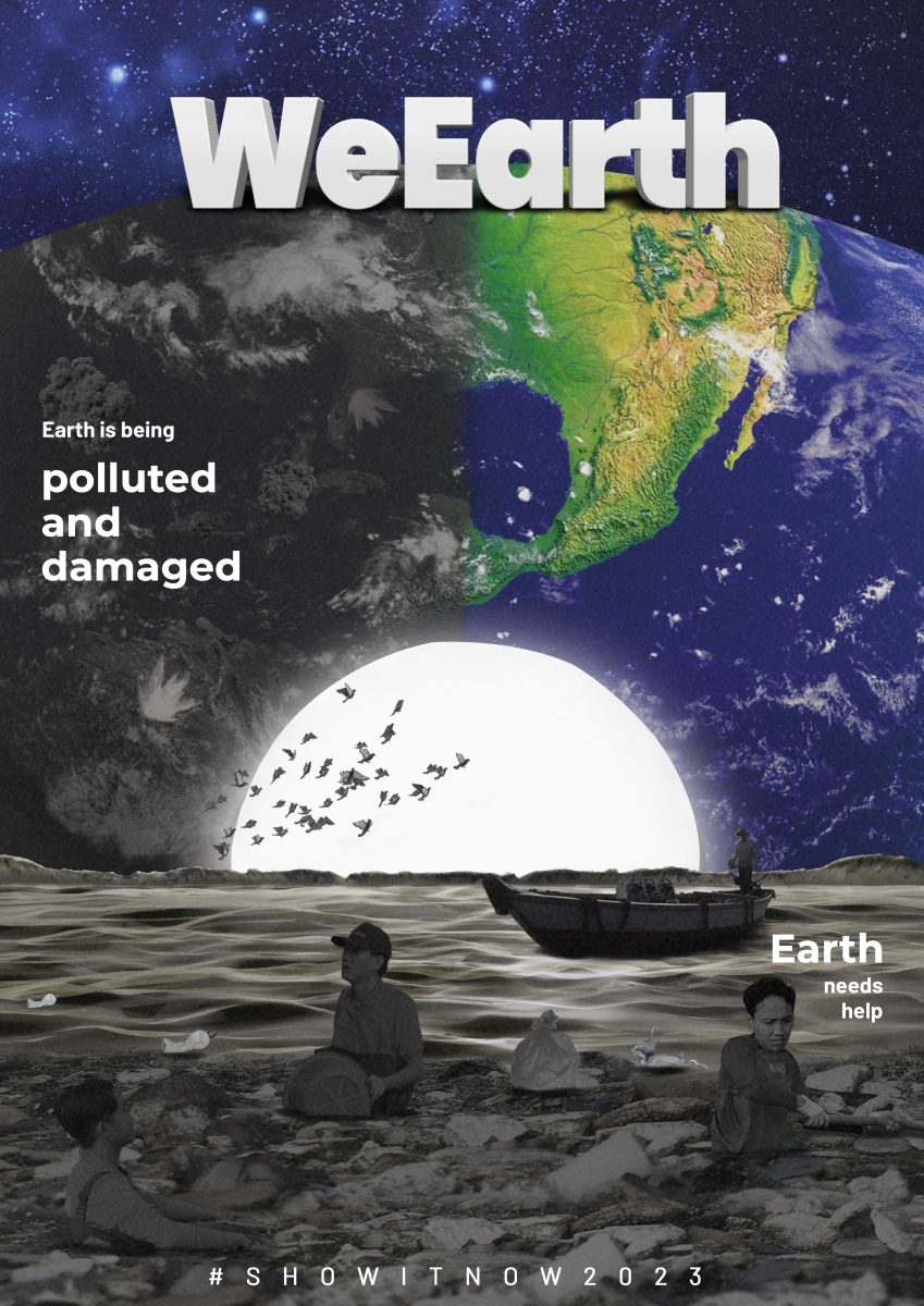 Tác phẩm mình lấy bối cảnh những thanh niên tình nguyện ngăn chặn rác thải tiến vào trái đất. Nếu không ngăn chặn được rác thải, sự ô nhiễm, làm cho biến đổi khí hậu gia tăng sẽ khiến Trái đất bị hủy hoại như bên trái, còn nếu chúng ta văn minh hơn ngăn chặn được sự ô nhiễm, rác thải đó thì Trái đất sẽ có lại sự sống như bên phải. Trái đất cho ta sự sống nhưng hiện nay rác thải, ỗ nhiễm rất nhiều thế nên trái đất rất cần sự giúp đỡ của chúng ta. Hãy chung tay vì một Trái đất trong lòng.
