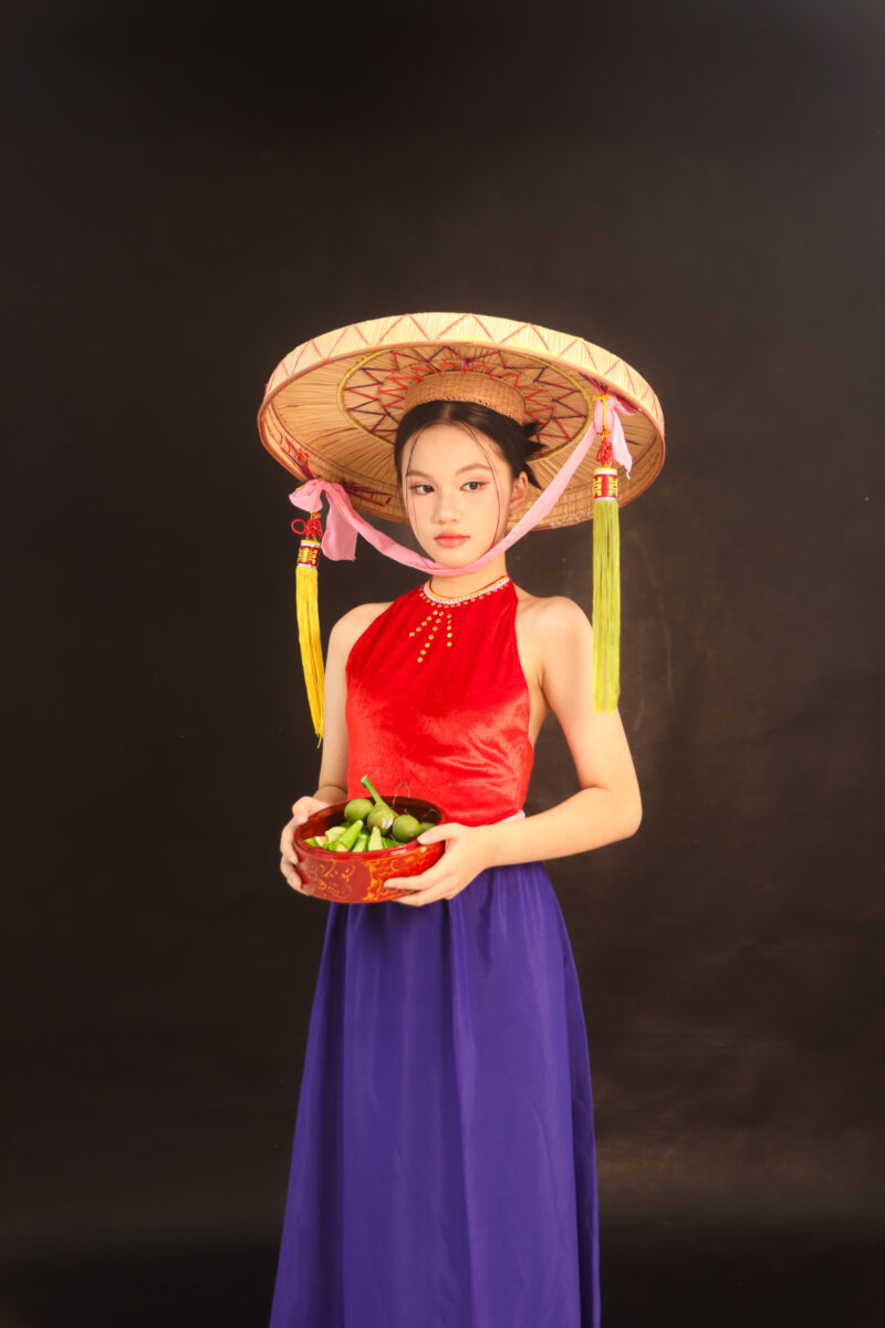 Mình là Ngô Lê Ý Nhiên, sinh ngày 14/10/2007, quê quán Hà Nội hiện đang học tại Đại học Văn Lang. Mình tham gia hạng mục Photo Story với bộ ảnh “Duyên trầu cau tình quan họ”. Cảm hứng đến với mình từ bà ngoại người luôn yêu quan họ. Từ nhỏ mình đã quen với hình ảnh bà mặc áo tứ thân, đội nón quai thao và hát cho nghe những câu quan họ ngọt ngào. Mỗi lần nhìn lại ảnh bà thời trẻ mình thấy trong đó là cả một phần ký ức văn hóa đang dần bị quên lãng. Vì vậy mình muốn dùng góc nhìn của người trẻ để tái hiện lại nét đẹp quan họ và trầu cau vừa truyền thống, vừa mang hơi thở hiện đại.
