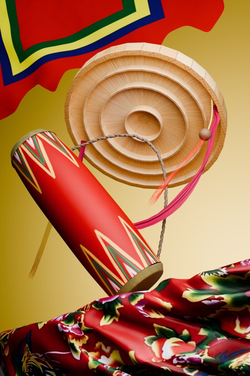 “Flying Vietnam” là một project sử dụng hình thức 3D illustration để tái hiện các sự vật và hoa văn mang đậm dấu ấn văn hóa của ba miền đất nước theo phong cách semi-realistic, trong đó mọi vật thể đều đang “bay lượn” giữa không trung — như một cách tượng trưng cho tinh thần tự do, sáng tạo và sự vươn mình của văn hóa Việt trong thời đại mới.