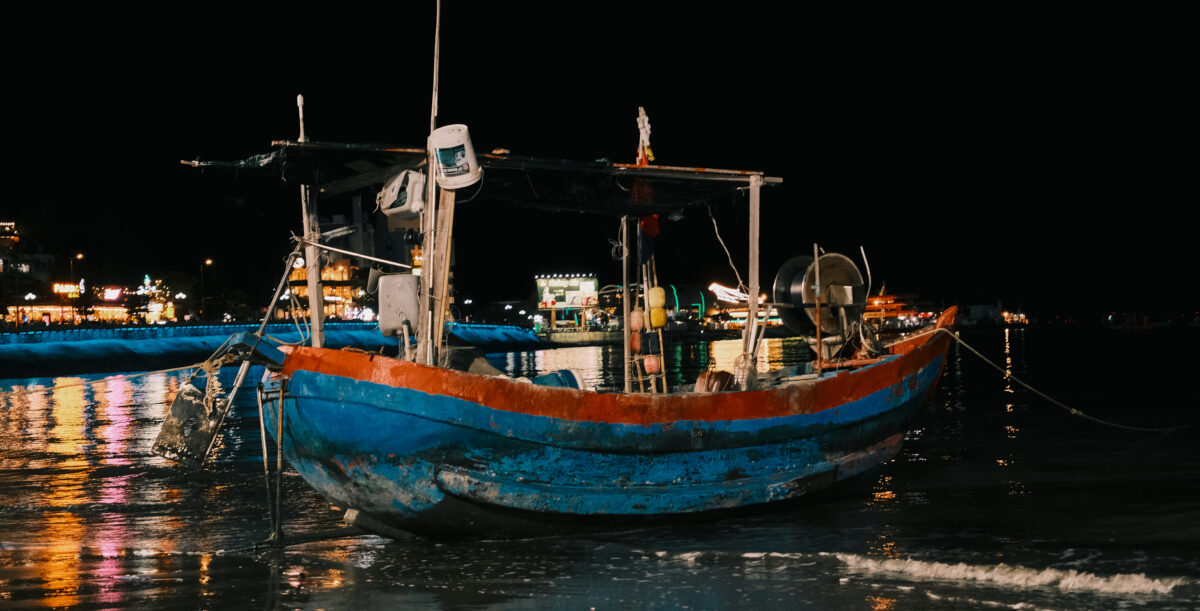 Những khung hình được em ghi lại khi thành phố chìm trong ánh đèn và tiếng sóng. Chiếc thuyền cũ nằm yên, đứa trẻ khẽ mỉm cười bên cha, người thanh niên hướng ra biển như đang tìm kiếm điều gì nơi chân trời đen đặc. Ánh sáng và bóng tối đan xen, phản chiếu những câu chuyện nhỏ của con người nơi phố biển. Đêm không ngủ — nó chỉ lặng lẽ giữ lấy nhịp thở của Vũng Tàu, của ký ức và bình yên.