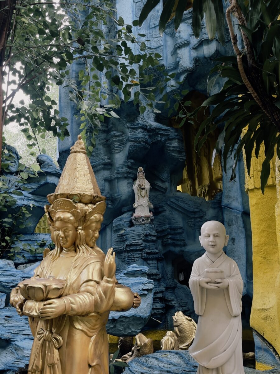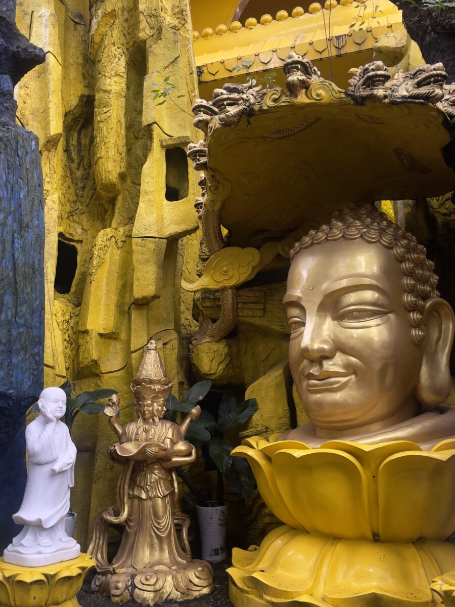 Bức ảnh ghi lại khoảnh khắc mình dạo quanh ngôi chùa trong một buổi chiều đầy nắng. Giữa không gian tĩnh lặng, tượng Phật hiện lên hiền hòa giữa sắc vàng và mùi hương trầm thoang thoảng. Mình chỉ chụp bằng chiếc điện thoại nhỏ, nhưng lại cảm nhận được sự bình an và ấm áp lan tỏa qua từng tia sáng. Đó không chỉ là chuyến đi tham quan, mà là hành trình nhỏ để khám phá sự an yên trong tâm hồn.