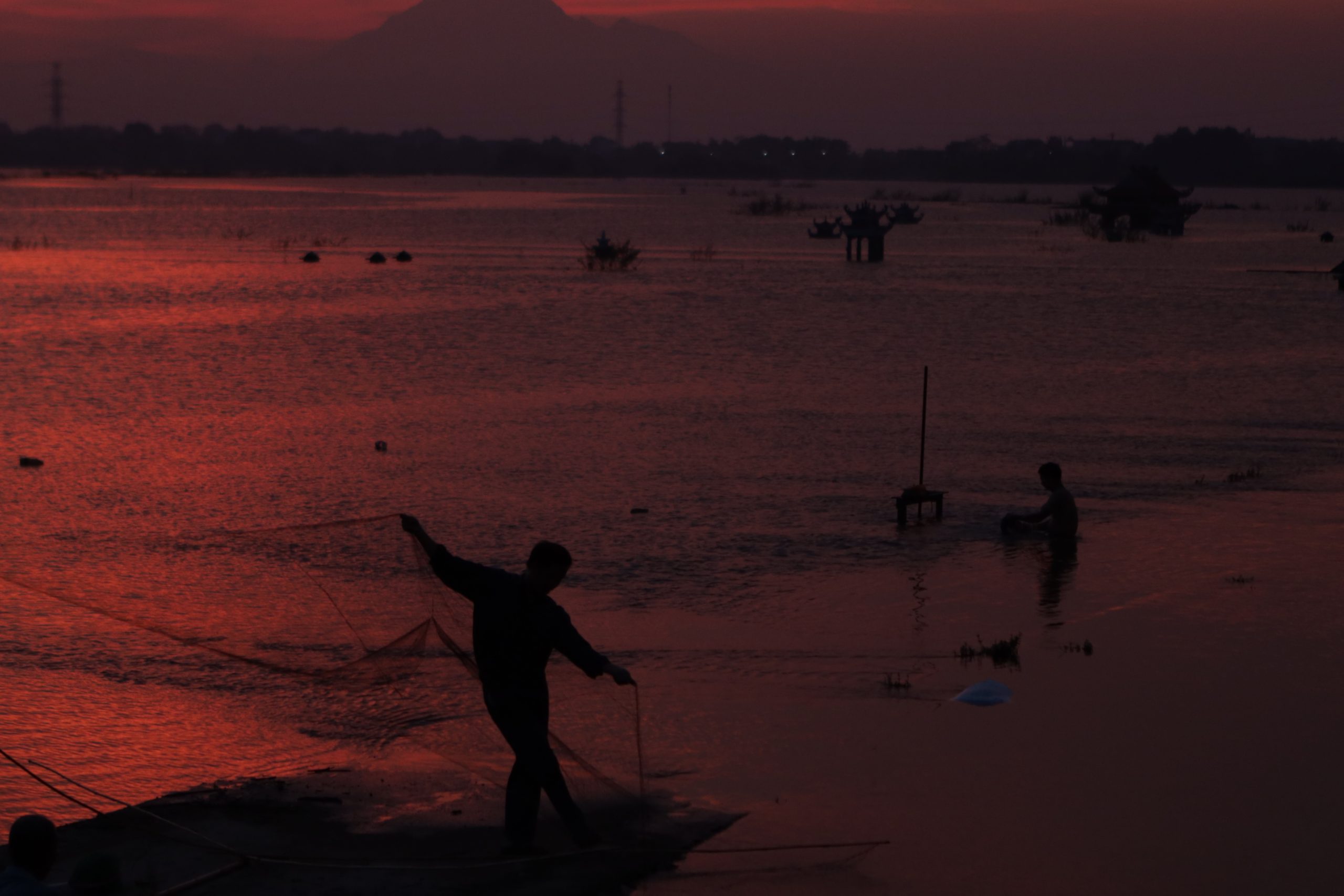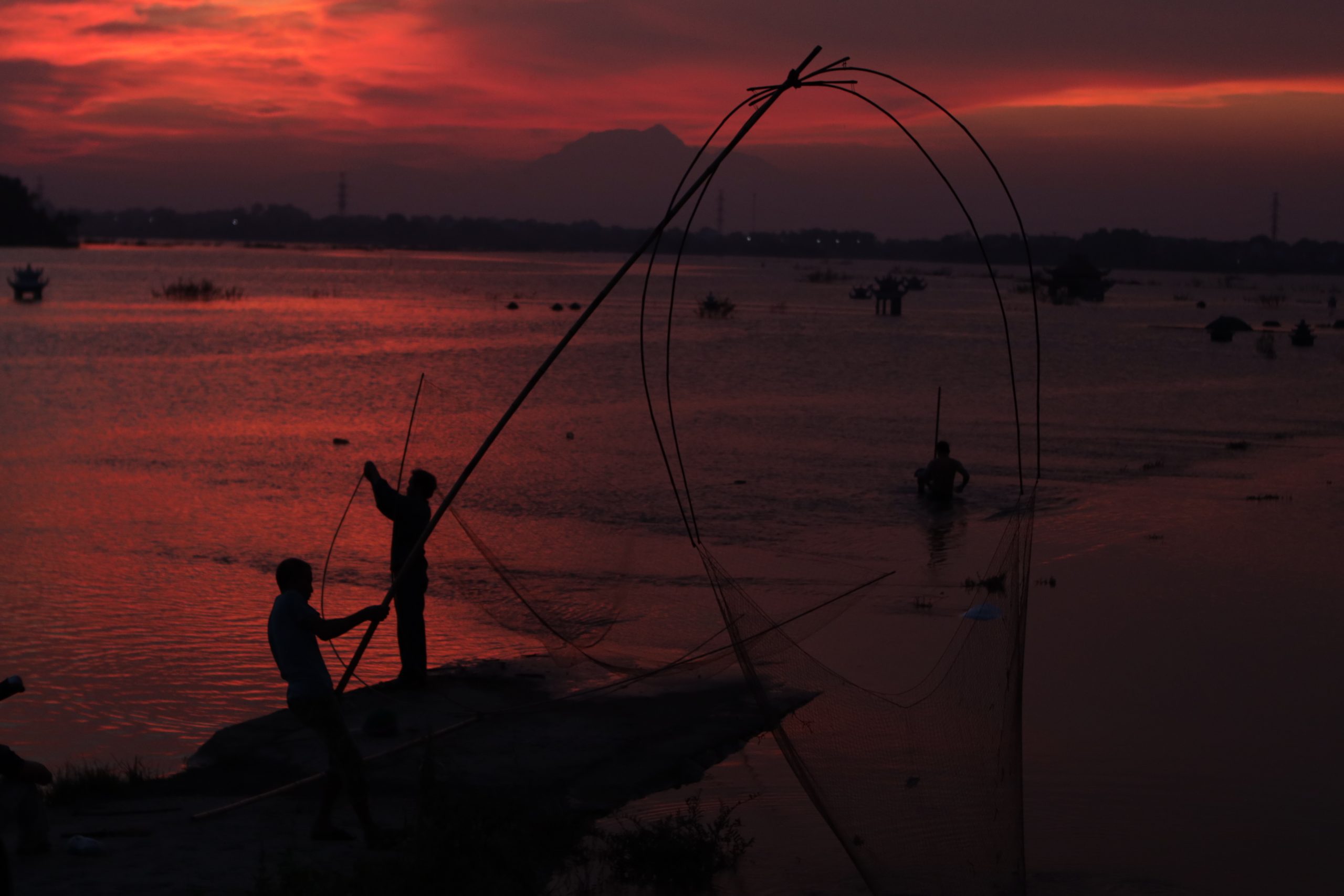 Việt Nam nằm trong vùng nội chí tuyến nên khí hậu mang tính chất nhiệt đới. Hoạt động mạnh mẽ của gió mùa, tác động của biển Đông đã mang đến cho nước ta lượng mưa và độ ẩm dồi dào. Bức ảnh này được chụp tại Quốc Oai, Hà Nội. Khi không mưa thì khu vực này là một cánh đồng để người dân trồng trọt, chăn nuôi. Sau khi mùa mưa tới tới gây ngập thì cũng là lúc cho các “ngư dân” bất đắc dĩ đi đánh cá.