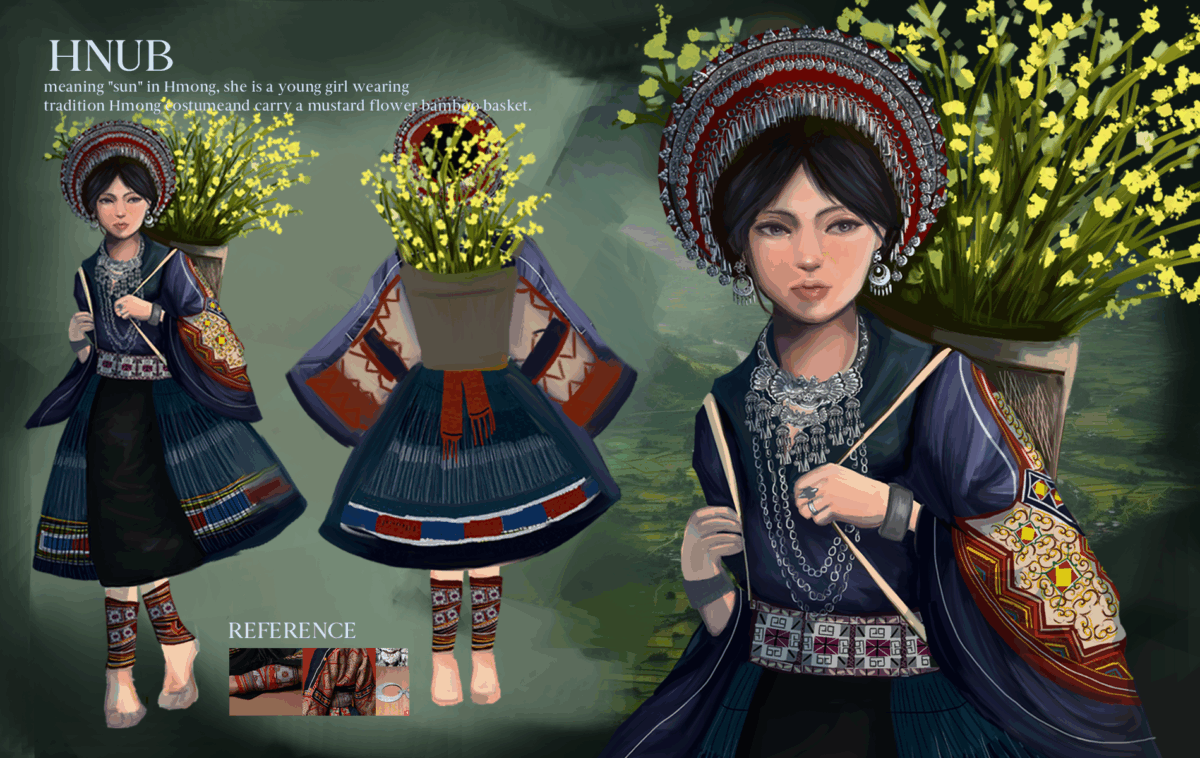 Thế hệ trẻ ngày nay có thể mang lại một đời sống mới cho văn hoá, bằng cách tiếp cận nó qua công nghệ và nghệ thuật số. Những hoa văn trên trang phục H’Mông không chỉ đẹp khi hiện diện ngoài đời, mà còn có thể sống dậy trong thế giới ảo. Mình chọn 3D để tái hiện nhân vật “Hnub” như một minh chứng cho điều đó. Khi truyền thống bước vào không gian kỹ thuật số, nó không mất đi, mà trở thành một phần trong những trải nghiệm gần gũi với giới trẻ. Hãy thử tưởng tượng một trò chơi nơi nhân vật khoác lên mình trang phục dân tộc, hay một bộ phim hoạt hình đưa câu chuyện dân gian thành hành trình kỳ ảo. Thiết kế và kể chuyện đương đại chính là cánh cửa để chúng ta khám phá lại di sản của mình.