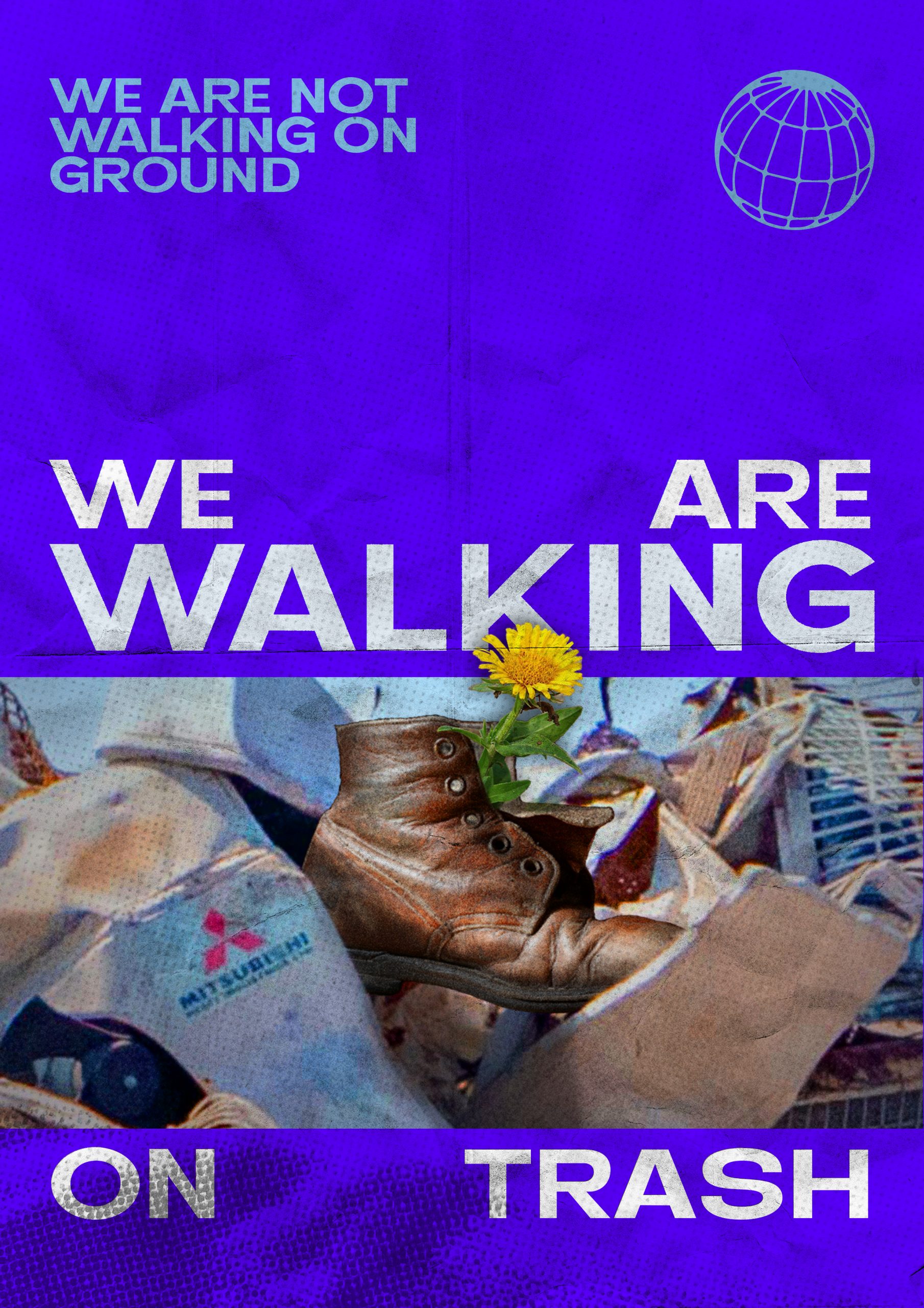Đây là tác phẩm truyền tải thông điệp: “Chúng ta không còn đi trên đất, chúng ta đang đi trên rác”, là lời cảnh báo về hiện trạng hiện nay. Với hình ảnh chính là đôi giày, mình đang ẩn dụ đến hình ảnh đôi chân chúng ta và cũng là rác thải thời trang (ngành công nghiệp đã đóng góp một ảnh hưởng xấu to lớn đến môi trường hằng năm không thua gì rác thải nhựa) đang nằm ở trên rác thải chứ không còn ở trên mặt đất. Và hơn hết, tác phẩm này nhắm đến đối tượng tuổi trẻ, là độ tuổi quan tâm về vấn đề thời trang nhất với phong cách thiết kế trẻ trung và hiện đại. Vốn dĩ thời trang không sai nhưng nó sẽ sai khi ý thức người sử dụng không tốt, vì vậy thay vì vứt bỏ sau khi sử dụng, chúng ta có thể dùng nó để “bảo vệ môi trường”. Hình ảnh bông hoa dại vươn lên từ đống rác và trong một chiếc giày là một hình ảnh ẩn dụ cho một hướng xử lý rác thải một cách thân thiện hơn với môi trường.
