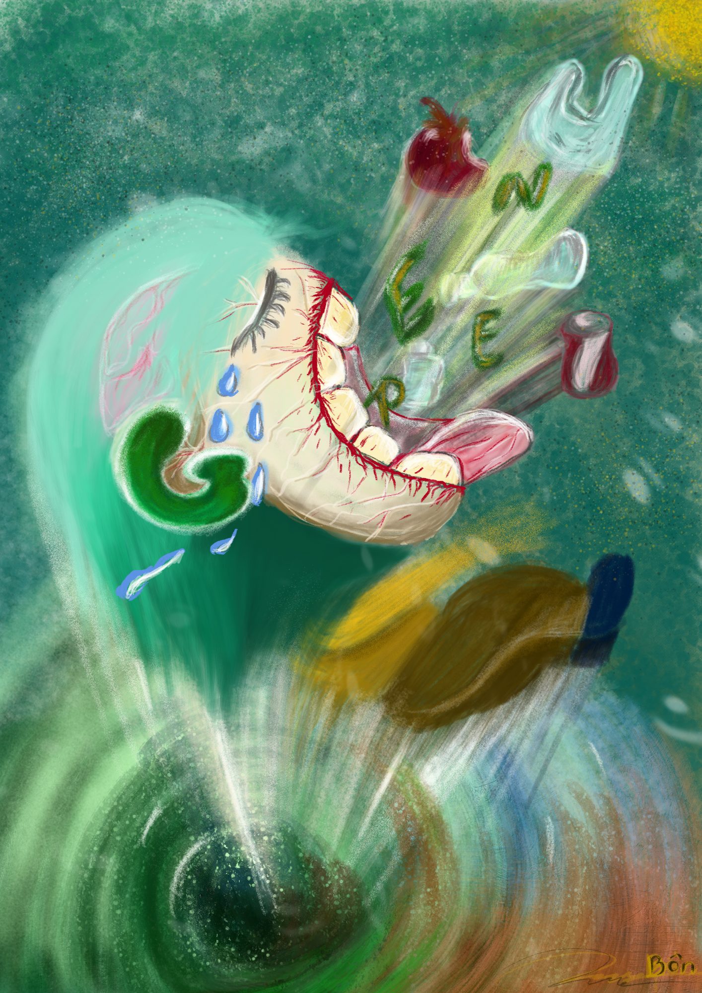 Ý tưởng vô tình chợt đến với mình. Con người sẽ biết sợ khi họ trải nghiệm hậu quả, sẽ đến một ngày chúng ta phải nuốt lấy những loại rác thải để làm tài nguyên “xanh” cho chính thiên nhiên nơi mà chúng ta đang sống. Green Your Mind như lời nhắn nhủ: “Hãy thay đổi tư duy cả bên trong lẫn bên ngoài của bạn, hãy làm mọi thứ trở nên tươi xanh. Hãy biết lắng nghe “Green” như Ear “G” muốn nhắn gửi đến các bạn.”