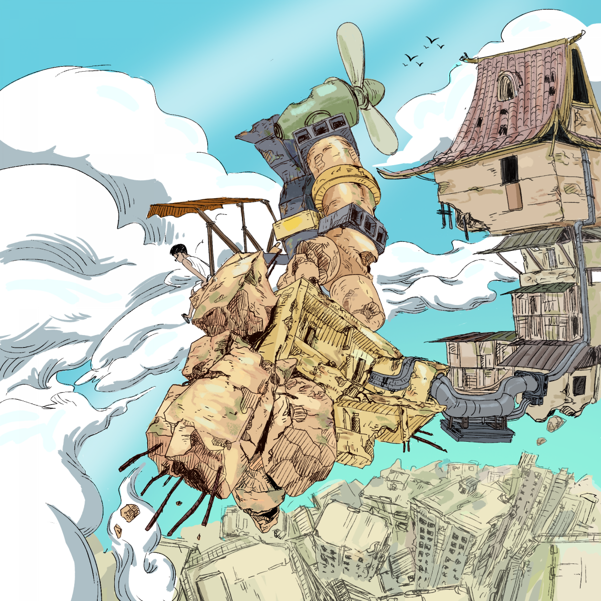 Em muốn thể hiện cảm giác bồng bềnh của mình trên bầu trời, đồng thời cũng muốn chỉ ra việc rác thải đang ngày càng nhiều. Em luôn có một câu hỏi trong đầu :”nhỡ đâu đến một ngày nó bay lên trời như em hay tưởng tưởng “?
