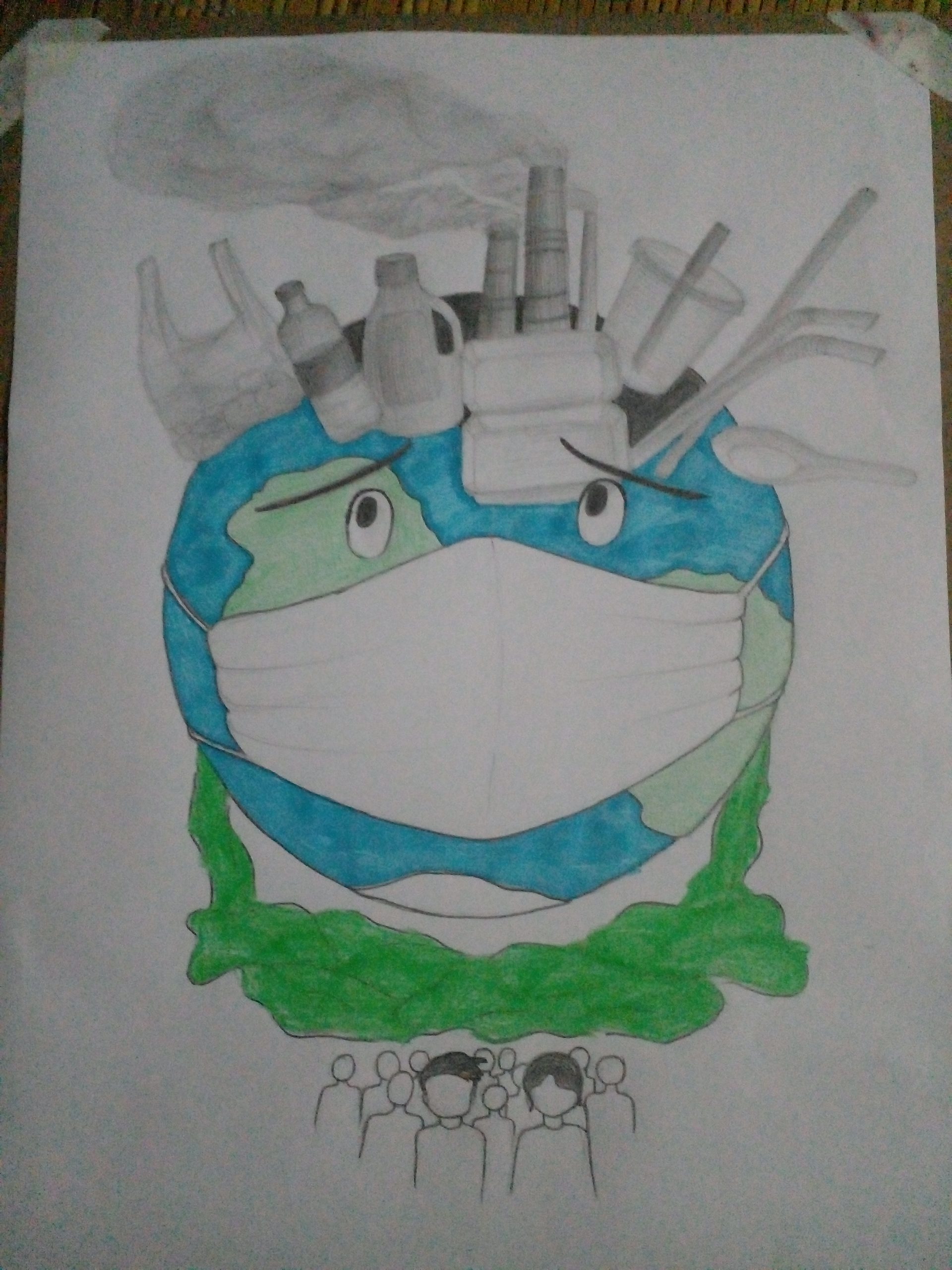 Trái Đất là một hành tinh đẹp, nơi con người sinh ra và lớn lên. Nhưng ko phải ai cũng quý trọng nó, dường như con người chỉ quan tâm đến lợi ích riêng của mình bằng mọi giá: các nhà máy đang xả chất thải ô nhiễm, chai lọ nhựa sử dụng tràn lan,.. Hành động đó đã khiến cho Trái Đất chịu tổn thương to lớn. Nhưng Trái Đất – hòn bi xanh của chúng ta vẫn đang che chở cho nhân loại, vẫn đang phải chịu đựng không khí ô nhiễm mà con người gây ra.