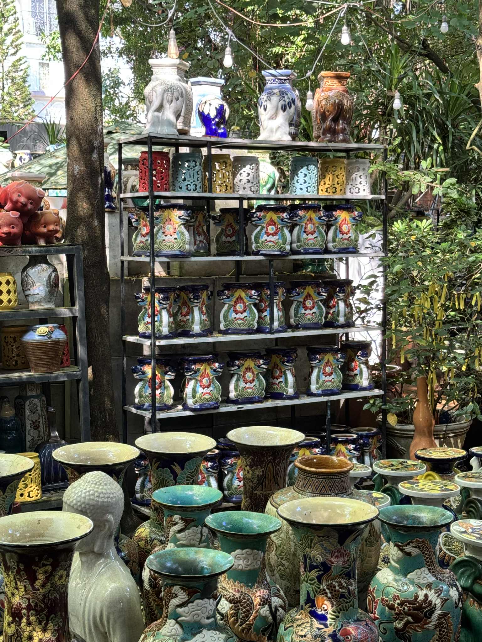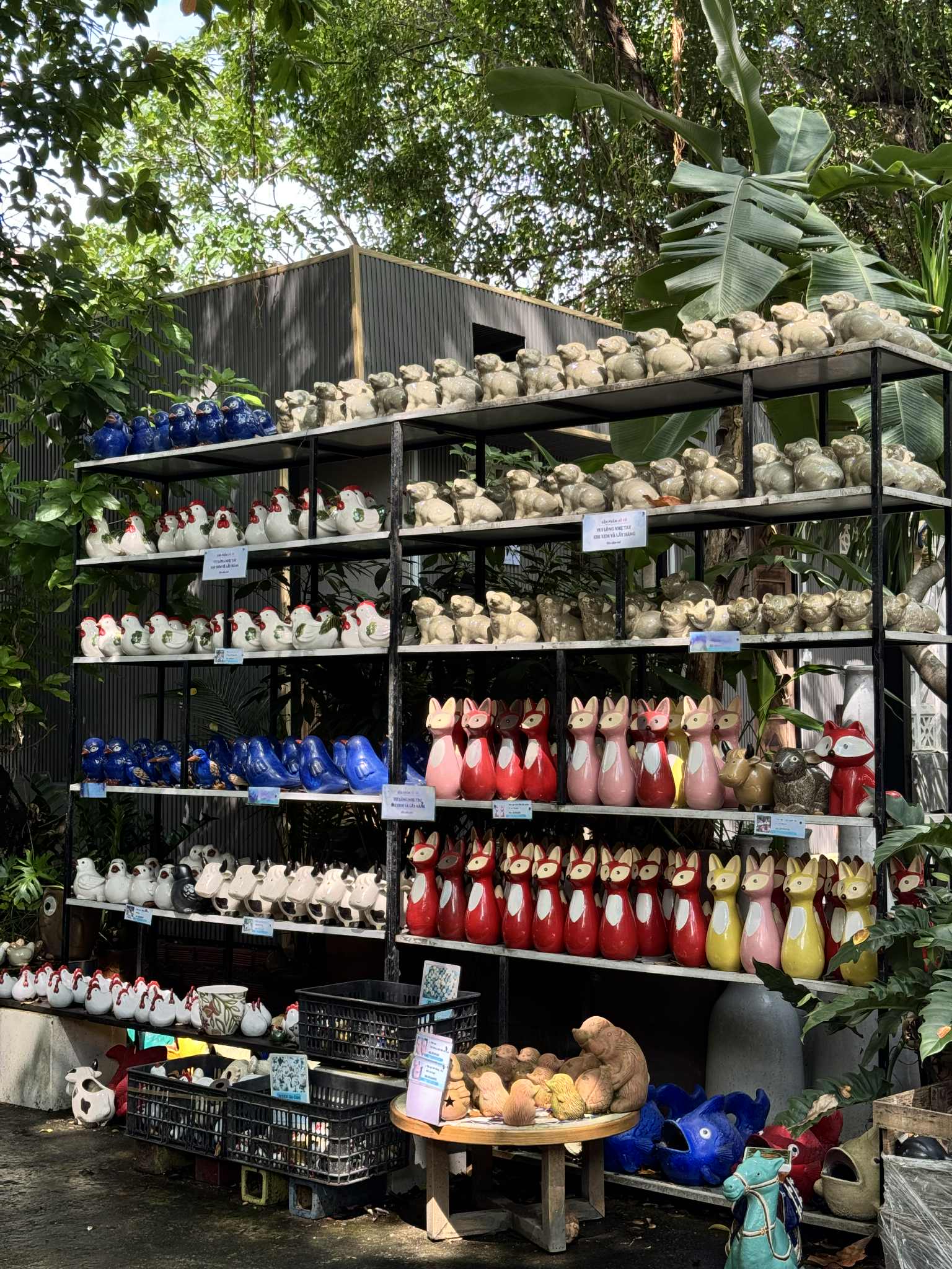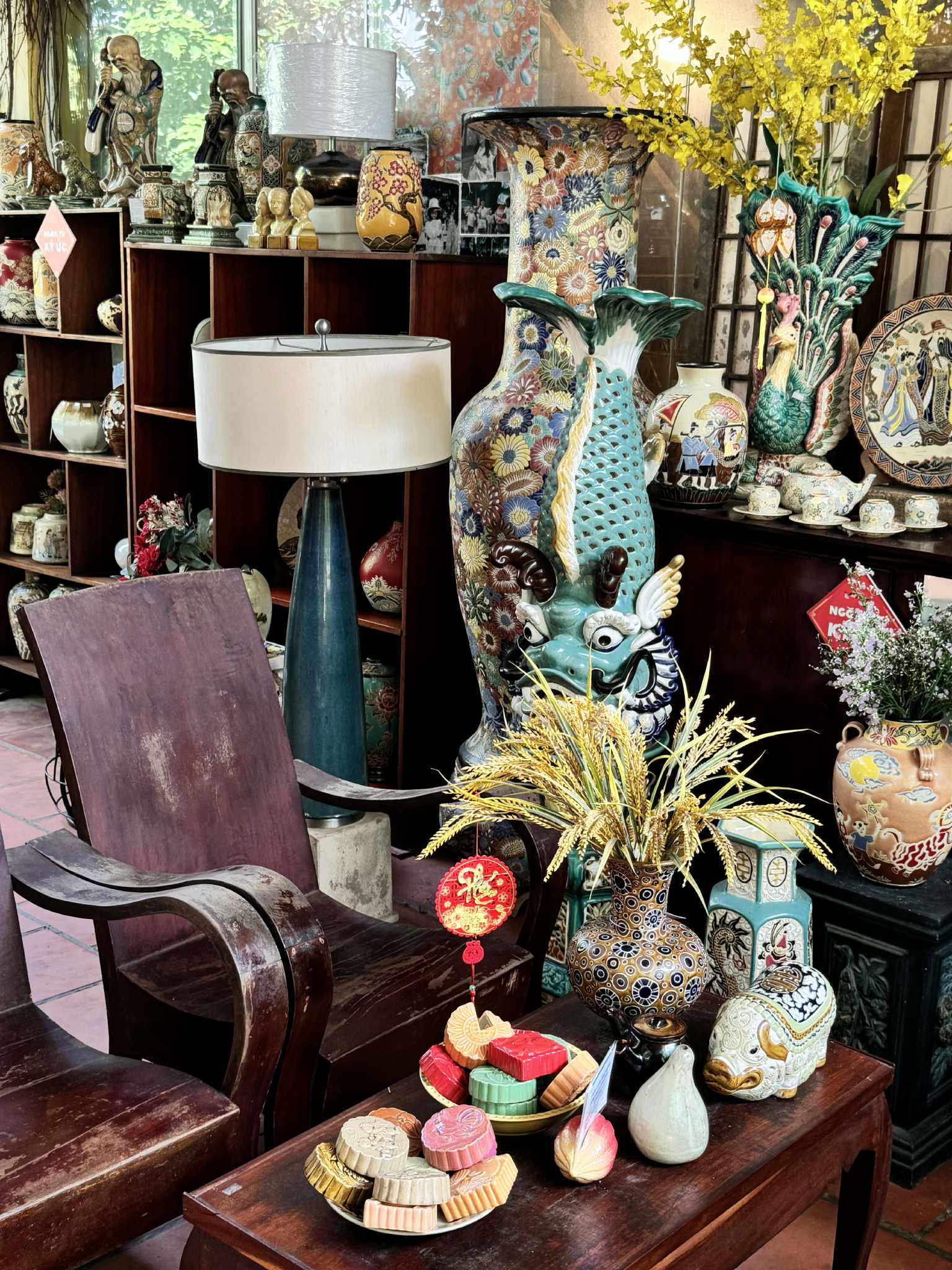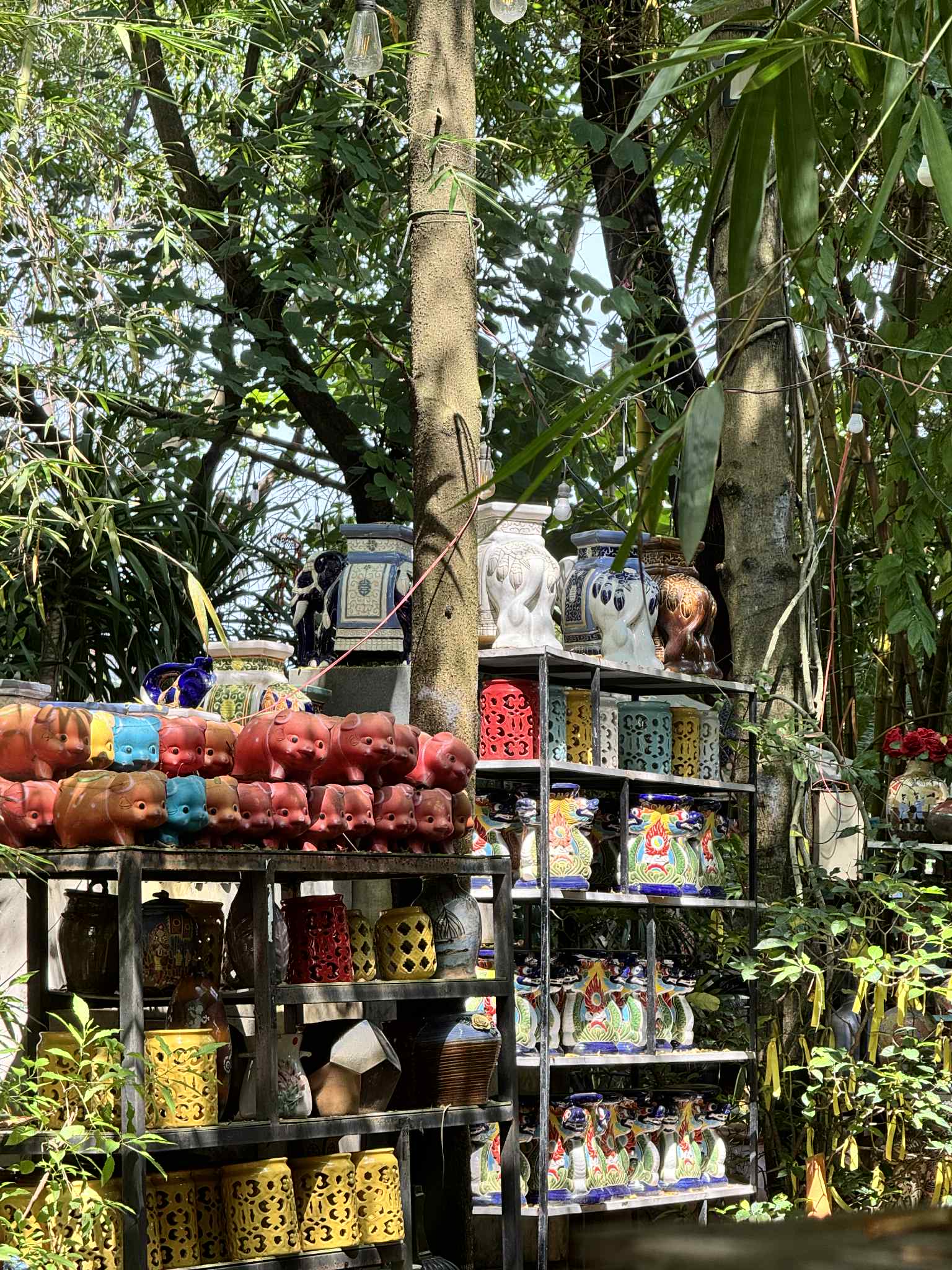 Giữa khu vườn rợp bóng cây, “Vườn nhà gốm” hiện lên như một không gian đậm hồn Việt – nơi đất, lửa và bàn tay con người hòa quyện tạo nên những sắc màu sống động. Mỗi món gốm, từ chú heo đất mộc mạc đến bình hoa rồng phượng tinh xảo, đều mang hơi thở của làng nghề xưa và nét bình dị của cuộc sống. Ánh nắng len qua tán lá chiếu lên men gốm, làm bừng sáng vẻ đẹp vừa gần gũi vừa nghệ thuật, khơi dậy trong lòng người ngắm niềm yêu thương với những giá trị truyền thống giản dị mà sâu sắc.