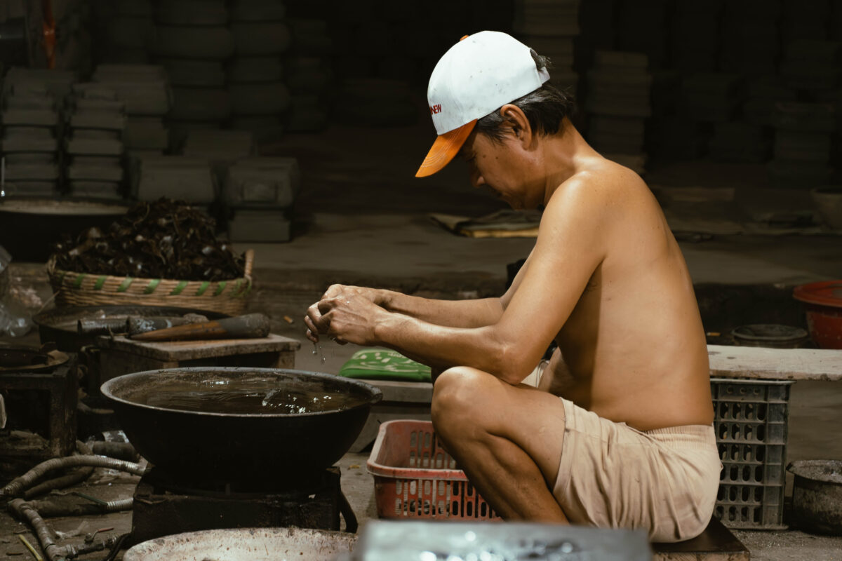 Tác phẩm 1: Dù giàu hay nghèo, bàn thờ có một lư đồng, một nén nhang cũng đủ tỏ lòng biết ơn. Ông bà ta quan niệm rằng, khói hương từ lư đồng là sợi dây vô hình kết nối con cháu với tổ tiên, thể hiện đạo lý “uống nước nhớ nguồn”. Đạo lý vẫn vững chãi đi qua nhiều thập kỷ cho đến khi xã hội phát triển. Người ta dần bị cuốn vào cái gọi là “nếp sống hiện đại” và dần để những phong tục lại phía sau. Dẫu vậy giữ lòng thành phố xa hoa nhộn nhịp, ta vẫn tìm về được nơi giữ lửa cho cội nguồn ấy được tiếp bước dù là nhỏ nhất. Cơ sở đúc lư đồng Quốc Kiến ở Gò Vấp, Tp. HCM vẫn thầm lặng gìn giữ một nét văn hoá. Dù chỉ là một lò đúc nhỏ lọt thỏm giữa thành phố rộng lớn, lò vẫn không để nghề bị phai nhạt. Những người thợ già, những lớp trẻ chịu khó học nghề, cùng với sự quan tâm của cộng đồng và chính quyền — đó là những yếu tố sống còn để “lòng thành” trong mỗi chiếc lư đồng không chỉ là lời nói suông, mà là cái gì đó vẫn còn nóng đỏ như lửa trong lò đúc.