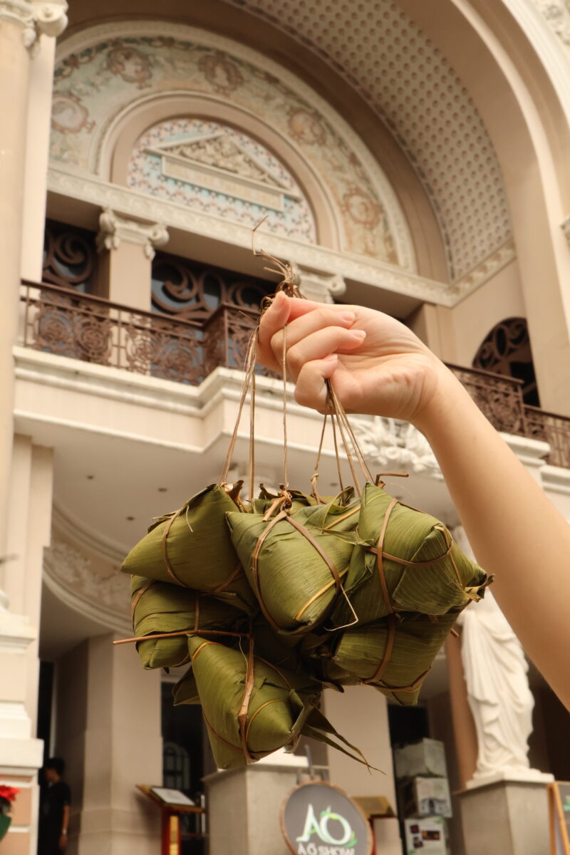 Tác phẩm 1-2-3-4-5: Được thực hiện tại Nhà hát Thành phố Hồ Chí Minh vào ngày 01/10/2025, công trình mang hơi thở kiến trúc Pháp cổ giữa nhịp sống hiện đại. Giữa không gian đô thị sầm uất, hình ảnh bánh ú lá tre và chiếc quạt nan trở thành điểm nhấn giản dị, gợi nhớ hương vị quê nhà và những giá trị truyền thống đã nuôi dưỡng tâm hồn Việt.
