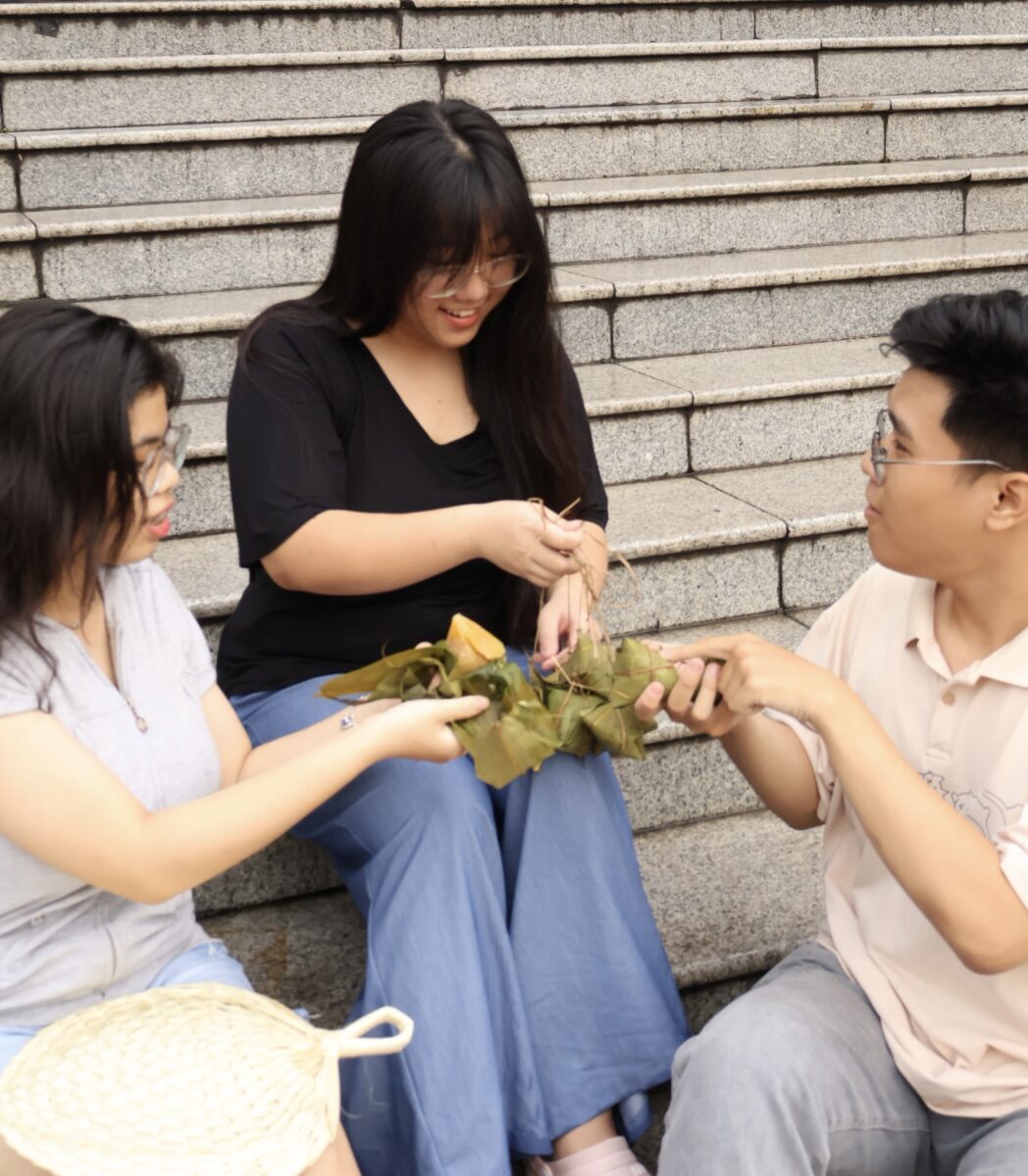 Câu chuyện được kể bằng chuỗi khoảnh khắc nối tiếp nhau: từ ánh nhìn của người mẫu – tuy hướng về phố thị nhưng vẫn chan chứa nỗi nhớ món bánh quê, đến bước chân giữa phố, rồi nụ cười sẻ chia cùng bạn bè. Mỗi khung hình là một lát cắt giao thoa giữa ký ức và hiện tại, giữa hồn quê mộc mạc và hơi thở đương đại. Cao trào của bộ ảnh nằm ở những giây phút tự nhiên – khi niềm vui, sự gắn kết và ký ức tuổi thơ cùng hội tụ trong chiếc bánh ú nhỏ bé. Cuối cùng, hình ảnh chùm bánh ú treo bên nền Nhà hát khép lại câu chuyện bằng thông điệp: Truyền thống không mất đi, chỉ thay hình đổi dạng để sống tiếp trong đời sống hôm nay.