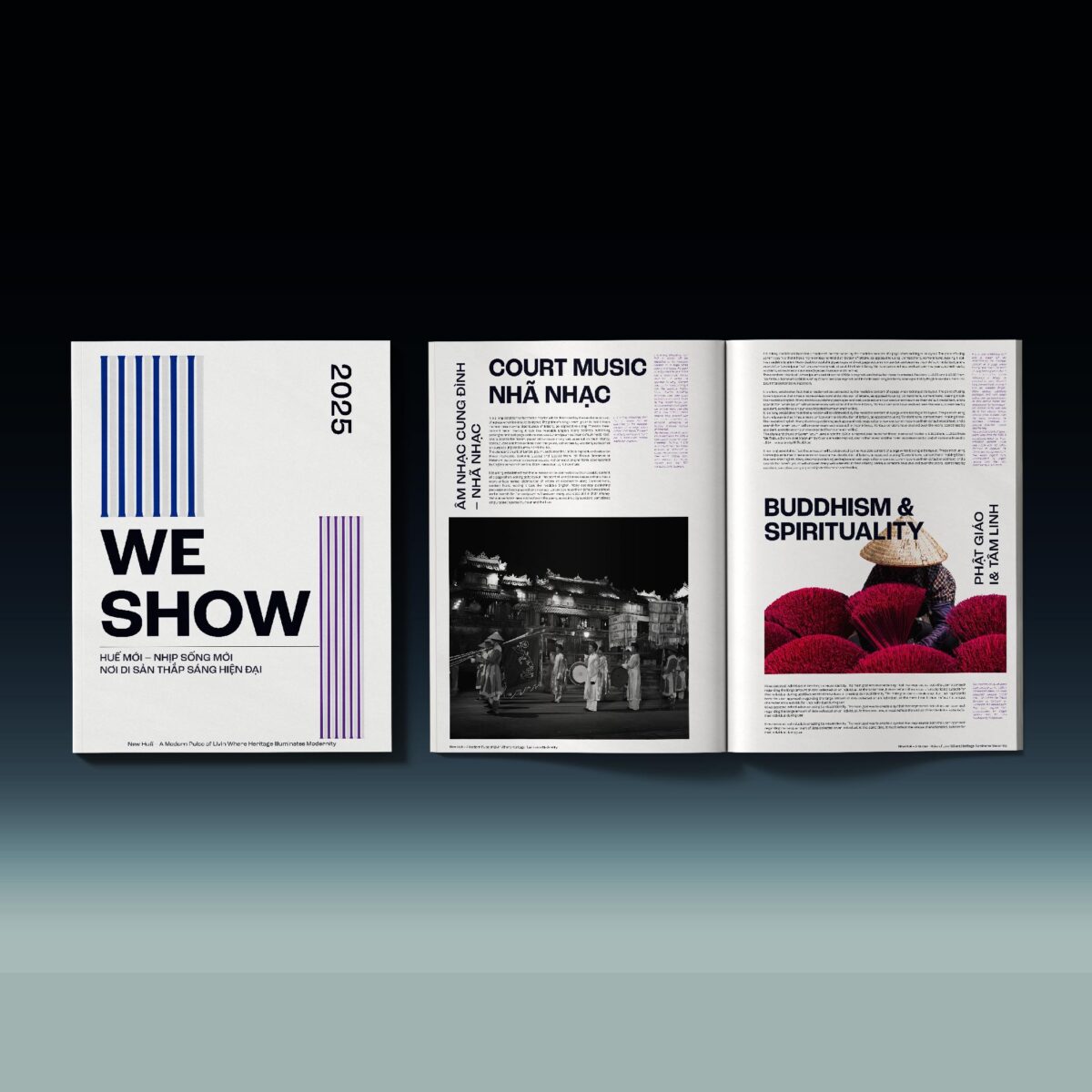 Hệ lưới 12 cột được phát triển dựa trên sự lặp lại của 6 giá trị cốt lõi văn hóa Huế, mang lại tính đối xứng, nhịp nhàng và hài hòa – tương tự quy hoạch kinh thành thời Nguyễn. Tỉ lệ cột, hàng và khoảng đệm được cân nhắc kỹ lưỡng để đảm bảo tính linh hoạt, giúp nội dung dễ dàng co giãn cho nhiều loại ấn phẩm mà vẫn giữ được tính nhận diện thống nhất.