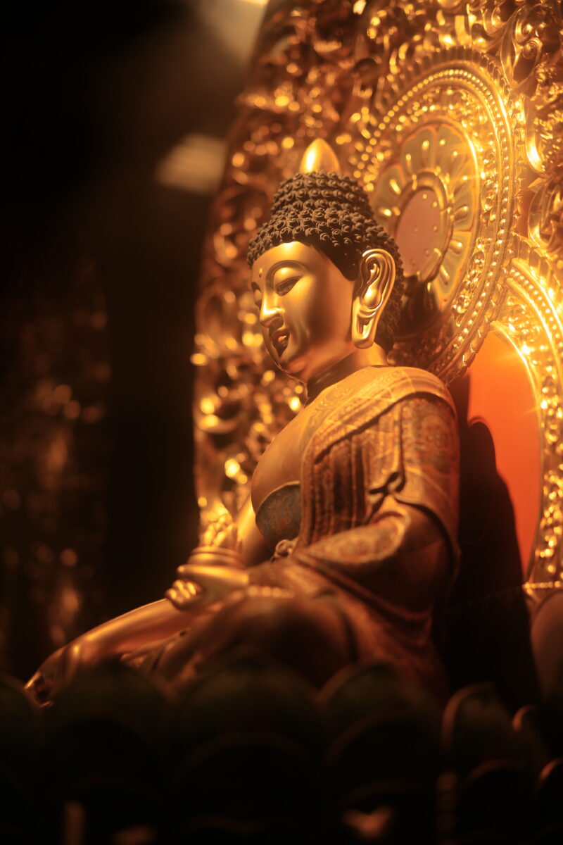 Tác phẩm là chuỗi hình ảnh hài hòa giữa sự uy nghiêm và tĩnh tại trong không gian Phật giáo.