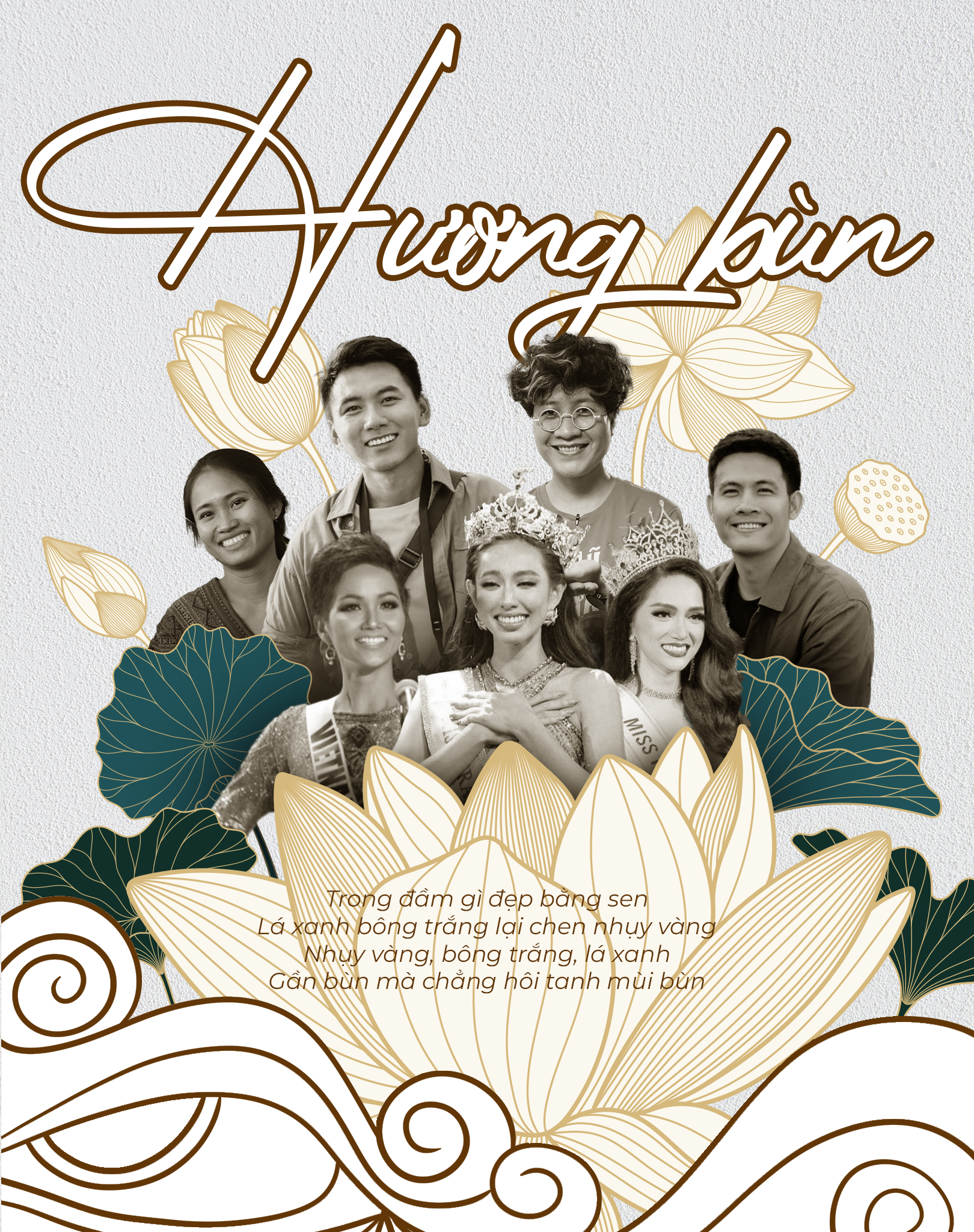Với hình ảnh Hoa sen nở ra người (Những con người truyền cảm hứng có sức ảnh hưởng lớn tại Việt Nam) từ ao bùn. Bùn ở đây ẩn dụ như đất nước Việt Nam (một nước nhỏ, đang phát triển) nhưng những con người này rất tự hào và yêu đất nước, con người. Hoặc nó cách khác, họ KHÔNG XEM BÙN LÀ MÙI MÀ XEM NHƯ LÀ HƯƠNG.
