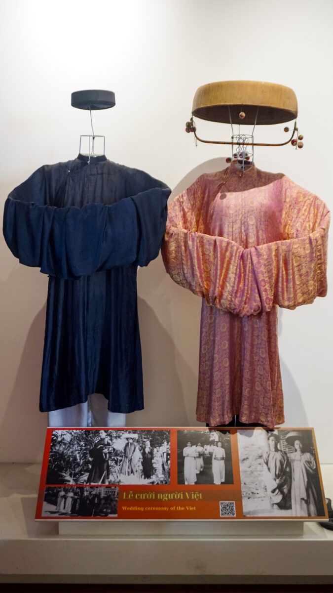 Tác phẩm 4: Trưng bày hai bộ trang phục cưới truyền thống của người Việt xưa trên ma-nơ-canh, cùng với các bức ảnh đen trắng về “Lễ cưới người Việt” (Wedding ceremony of the Viet).